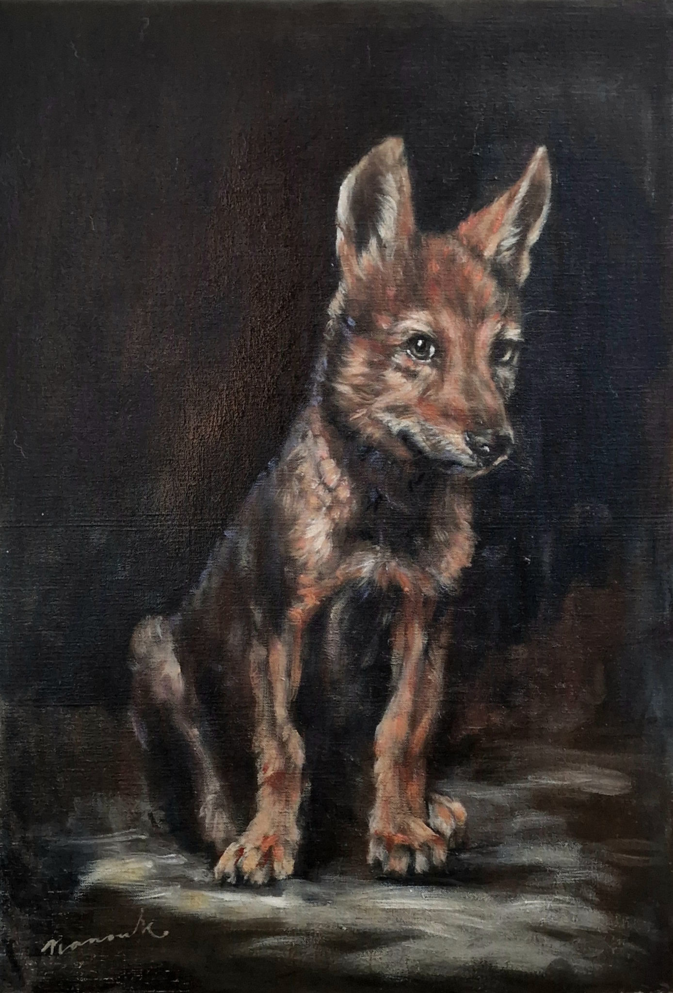 Ondeugend kijkende wolvenpup Deze wolvenpup heb ik zelf vastgelegd tijdens een bijzondere fotoshoot bij een particuliere klant. Zij had de pup uit Rusland geïmporteerd en het was een unieke gelegenheid om dit wonderlijke dier van zo dichtbij te kunnen fotograferen. Ik kreeg later de opdracht om hem als volwassen wolf te portretteren, maar toen was het noodzakelijk dat ik hem achter een glazen paneel observeerde en vastlegde. Het was een spannende ervaring, aangezien hij toen behoorlijk wild en onberekenbaar was; hij had de neiging om aanvallend te zijn als ik te dicht bij kwam. Het vastleggen van deze momenten, zowel van de schattige pup als van de volwassen wolf, geeft me een inzicht in zijn karakter en de schoonheid van dit bijzondere dier.