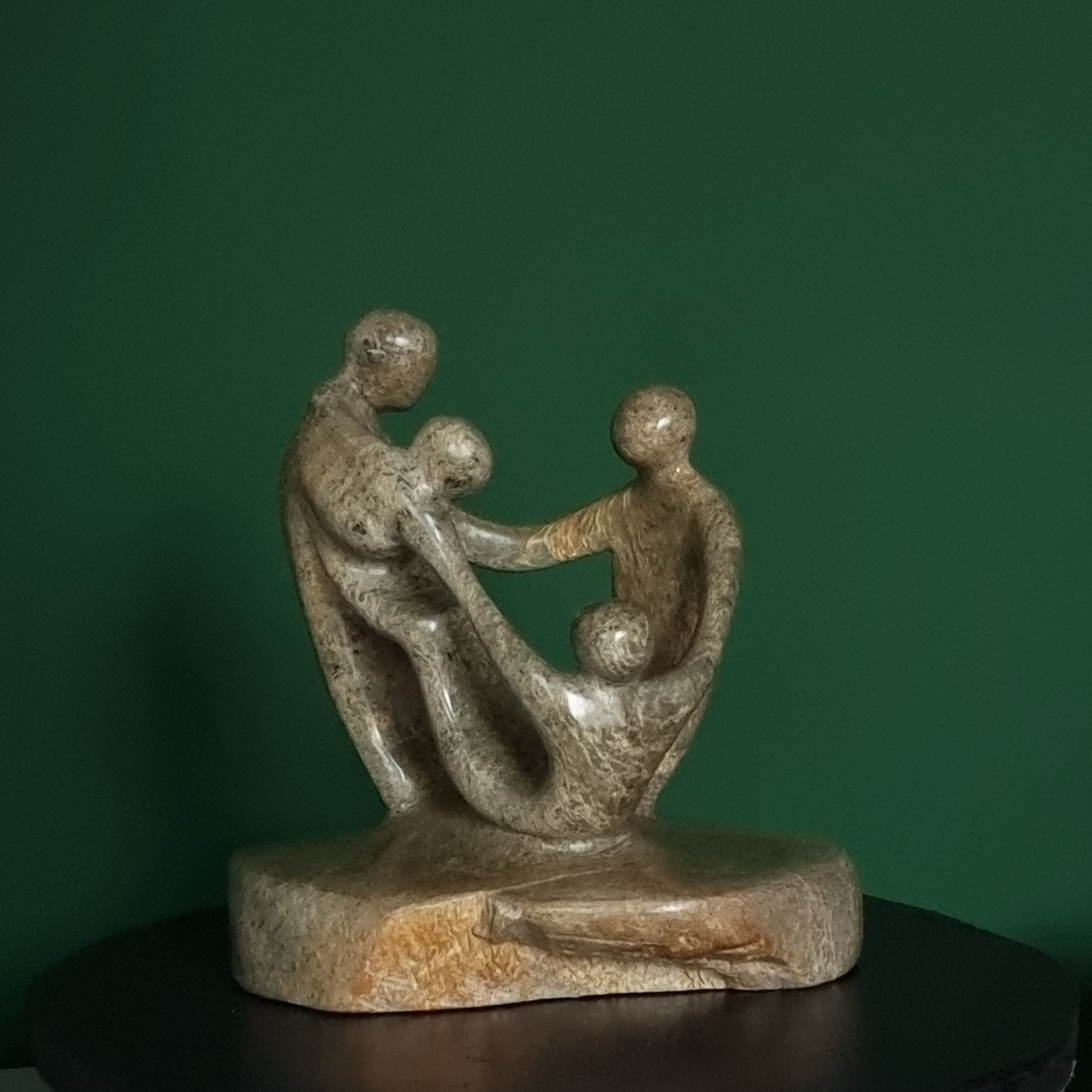 De opdrachtgevers wilden een beeld van hun gezin. Vader en moeder met zoon en dochter. Dansend met elkaar. Het hart tussen de vader en moeder toont hun liefde voor elkaar en voor de kinderen.