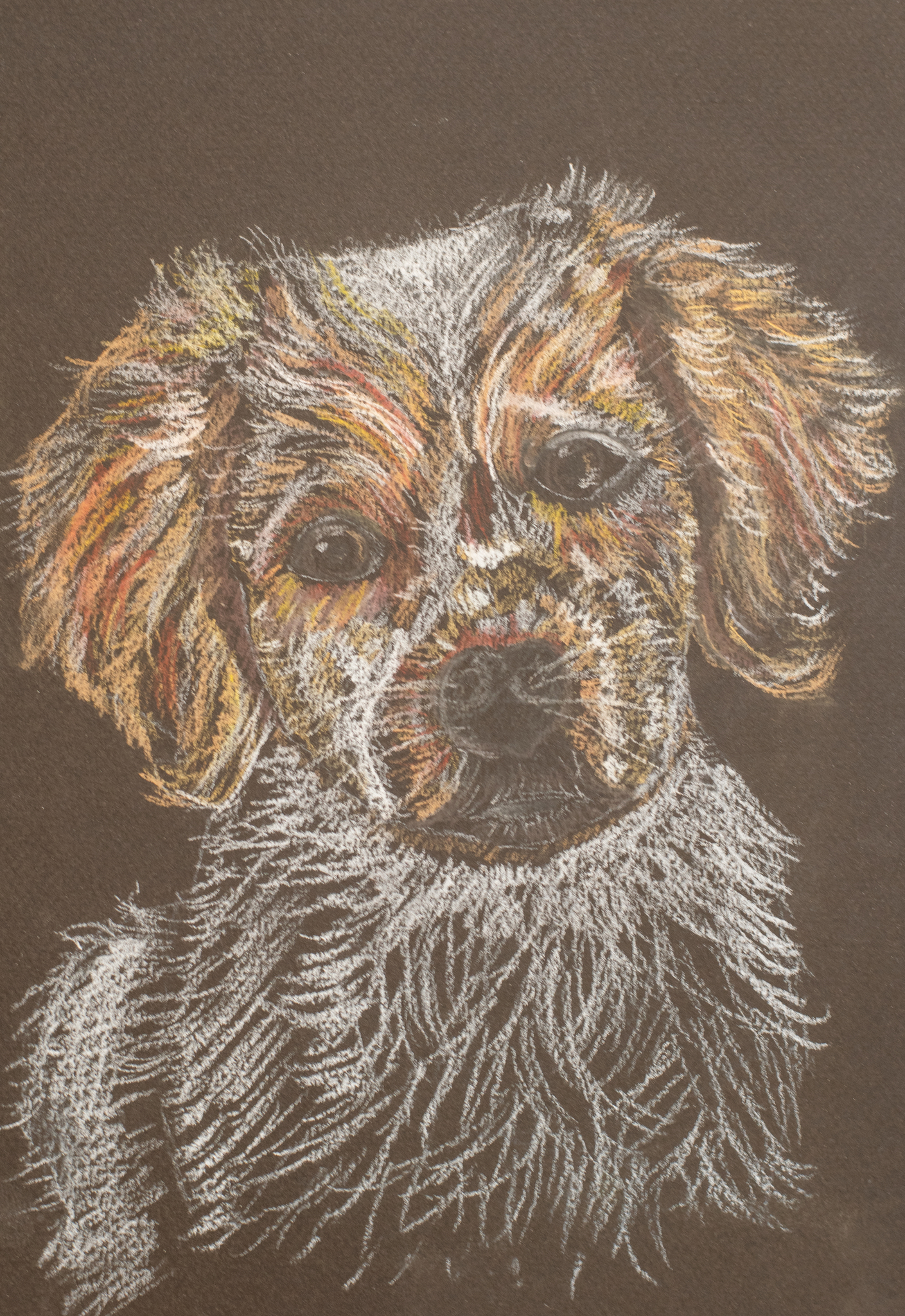Portret van een hond, gemaakt met pastelpotloden.