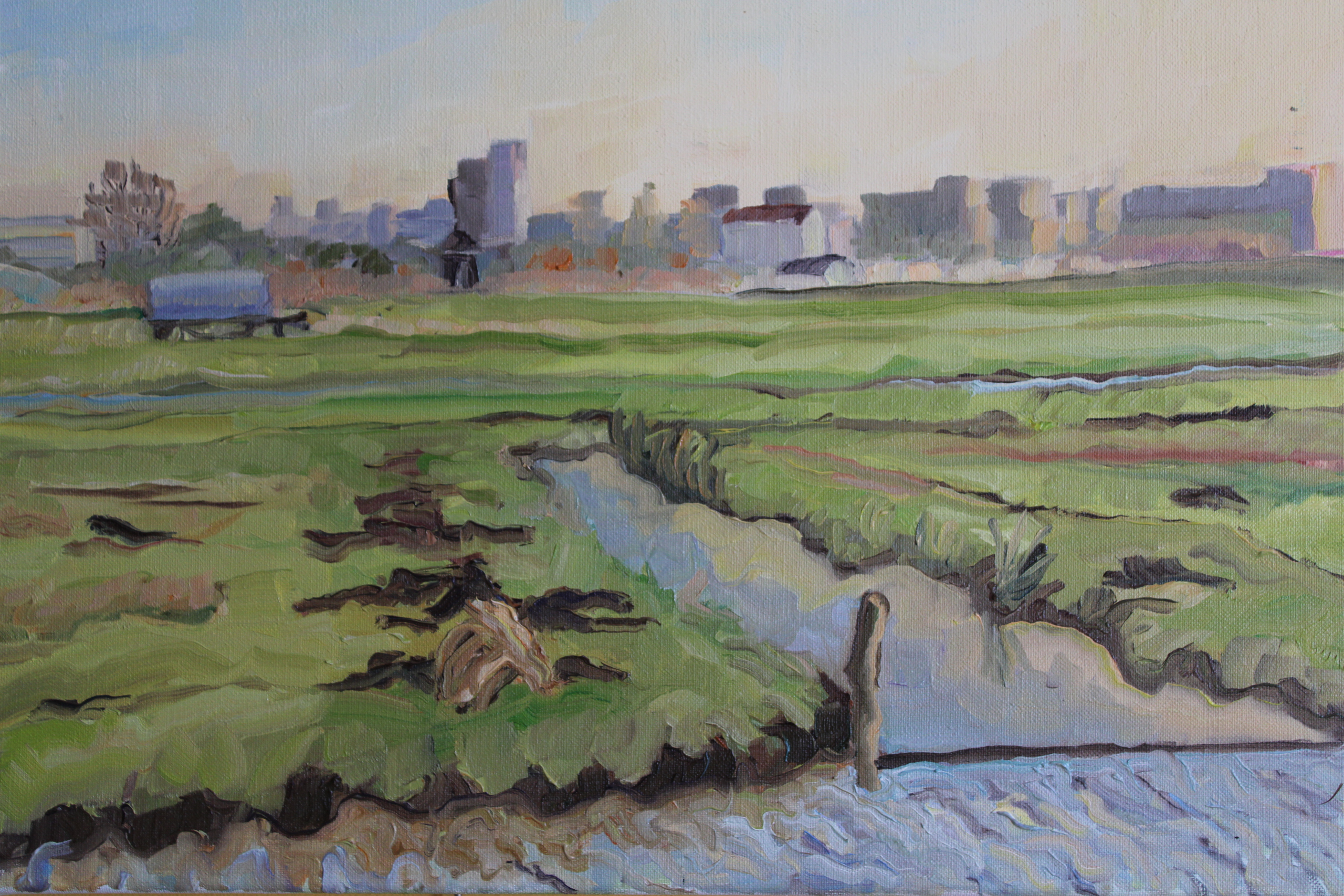 Landschap Water Olieverf Amsterdam Olieverfschilderij Vergezicht Weiland Lente Stadsgezicht Sloot Winterzon Pleinair Stadsschilderij Pleinairschilderij
