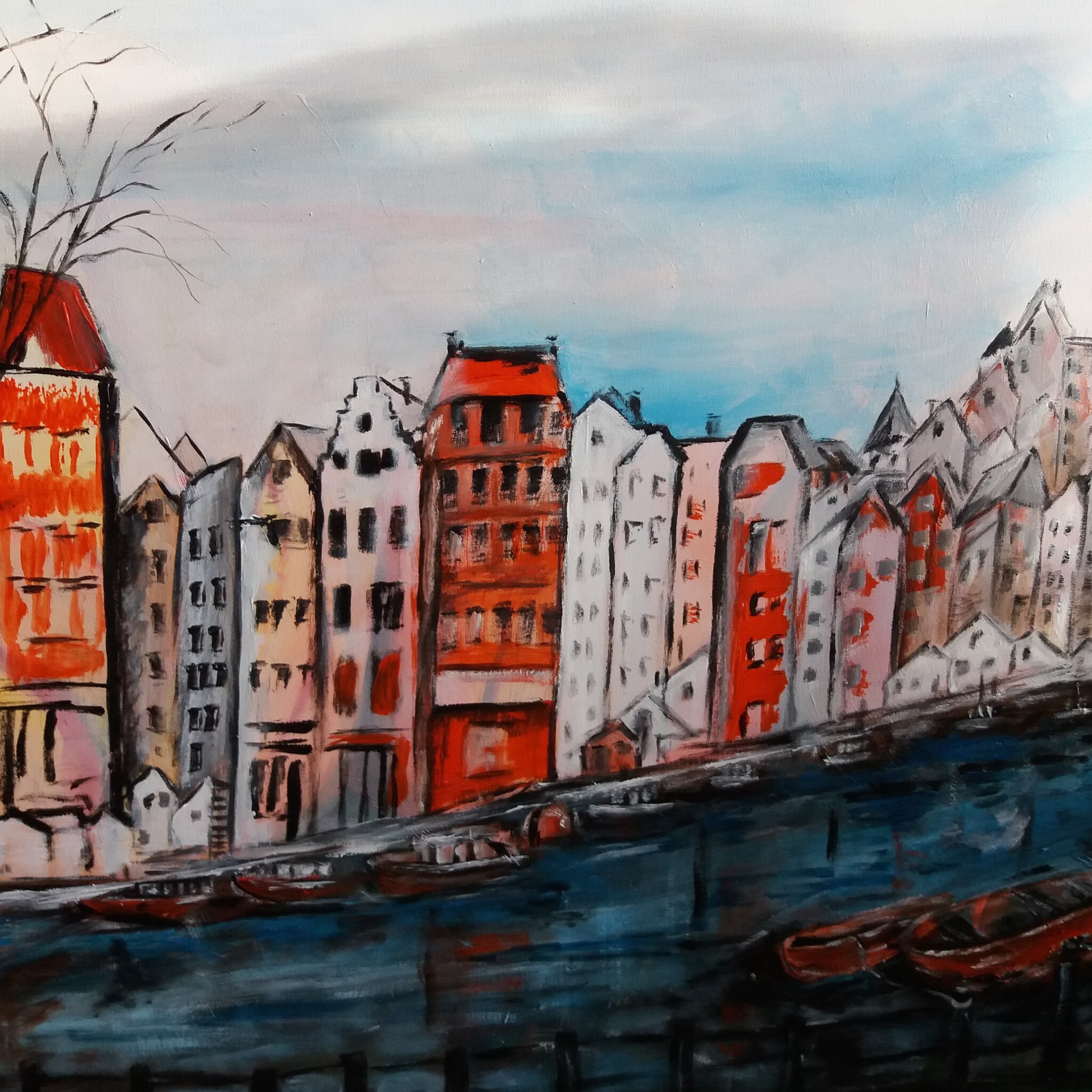 Stadsgezicht acryl op doek 100x80 #acryl #haven #stadsgezicht #kunstvoorjeraamlisse #kunstenaarscolllectief #kuCo #exto