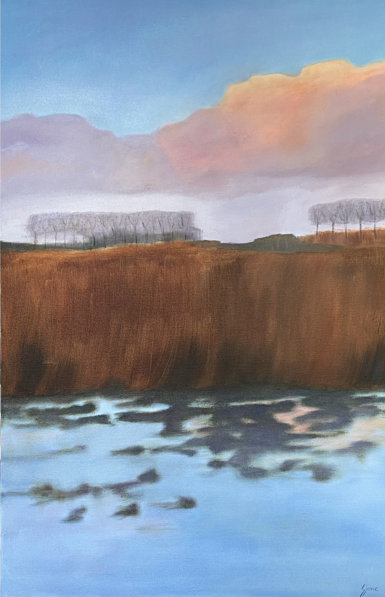 Het landschap is mijn grootste inspiratiebron. In de zomer heb ik veel buiten geschilderd. Mijn landschappen zijn kleurrijk en sterk geabstraheerd. Op het moment zijn mijn landschappen abstract.