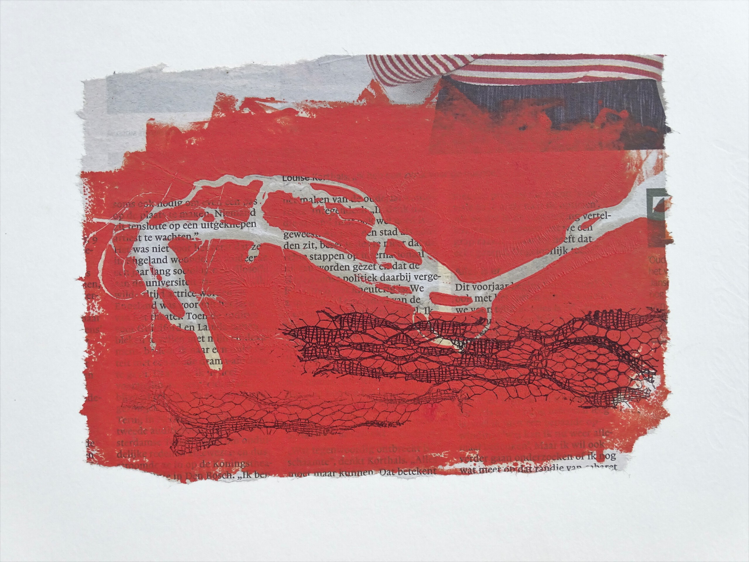 monoprint over foto in krant, beeld 13x18.5 cm