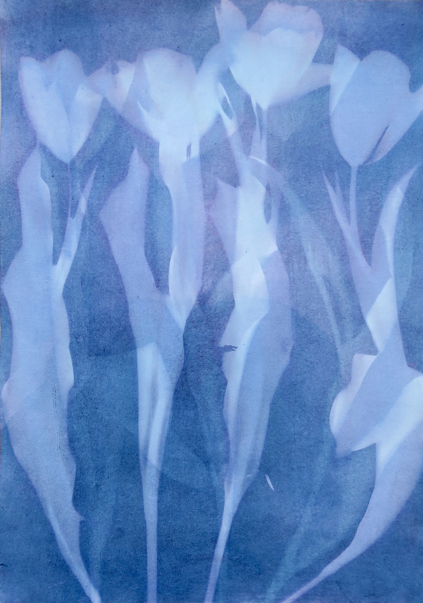 Tulpen Bloemen Blauw Zon Fotogram Sunprint Alternatieve Fotografie Cyanotypie