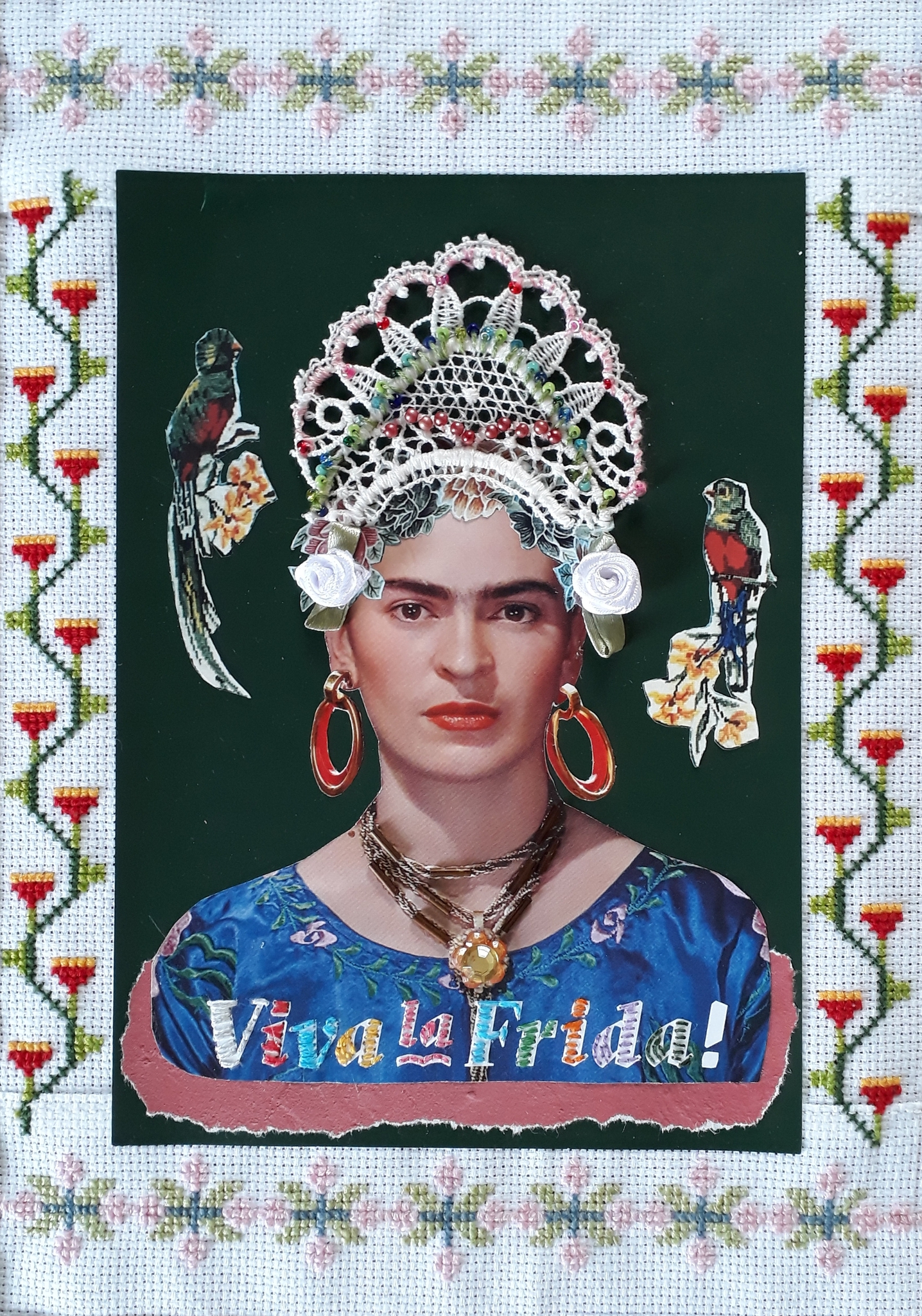 Collage op papier met geborduurde passe partout.
