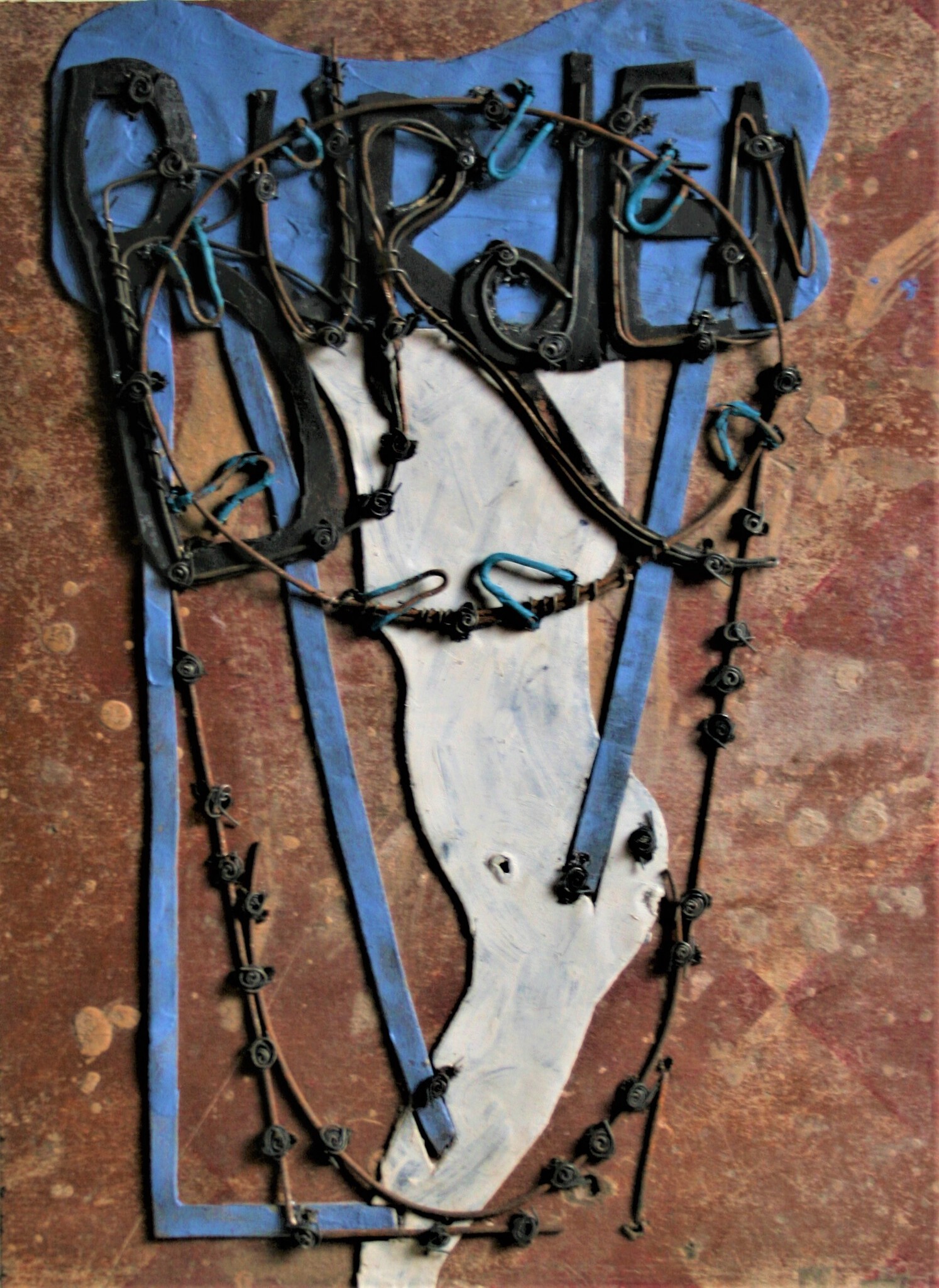 afval, ijzerdraad, hout, acrylverf, oliekrijt, bladlood, balatum