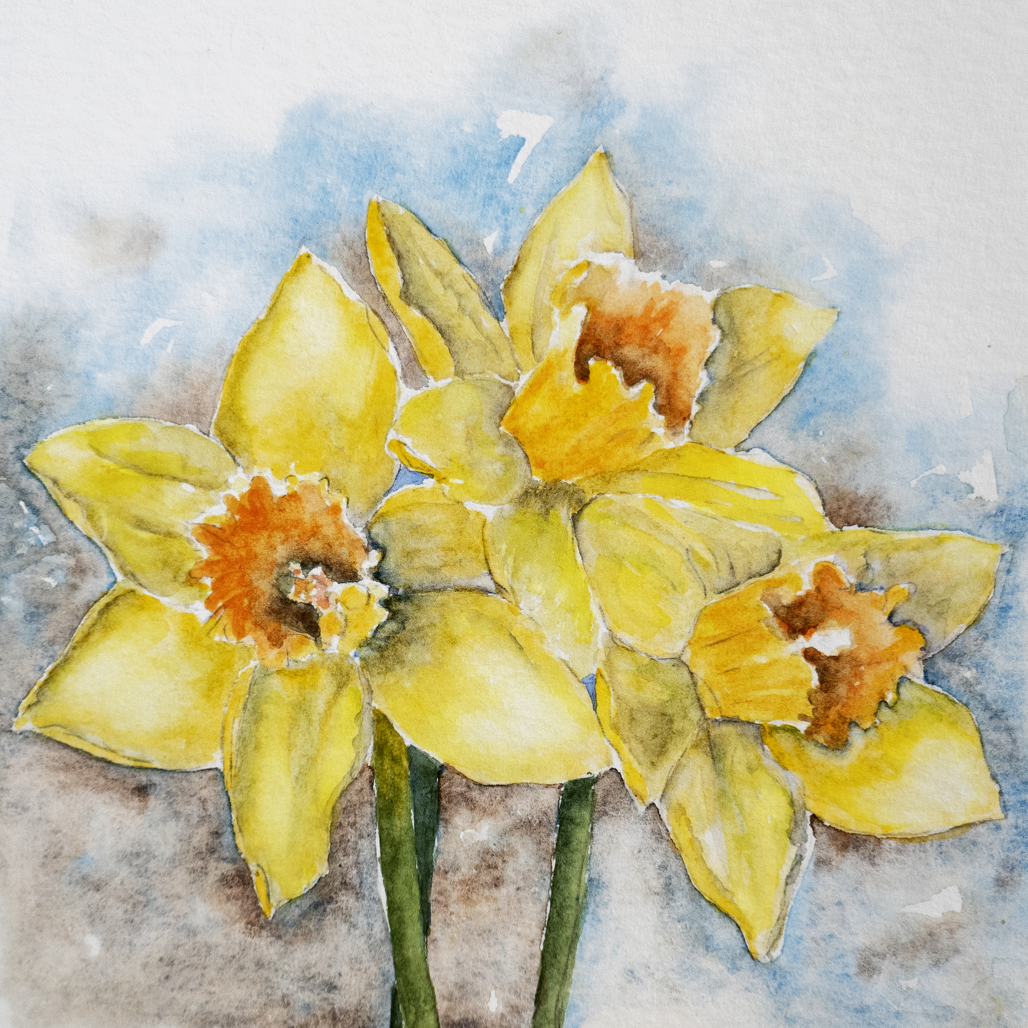 Narcis Bloem Geel Aquarel Voorjaar Narcissen Waterverf Natuur Vierkant 20x20 Kleur