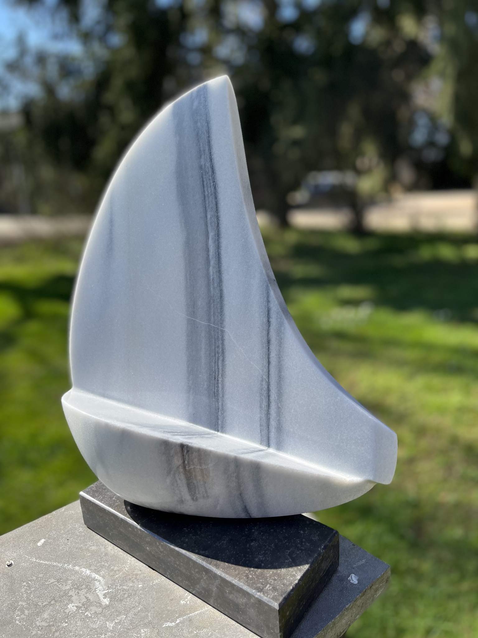 Beelden van steen: boten, vogels en abstracten waarbij ik me richt op de symboliek en gevoelswaarden van de vorm. Beweging, stroming en vrijheid zijn onlosmakelijk verbonden met mijn werk.