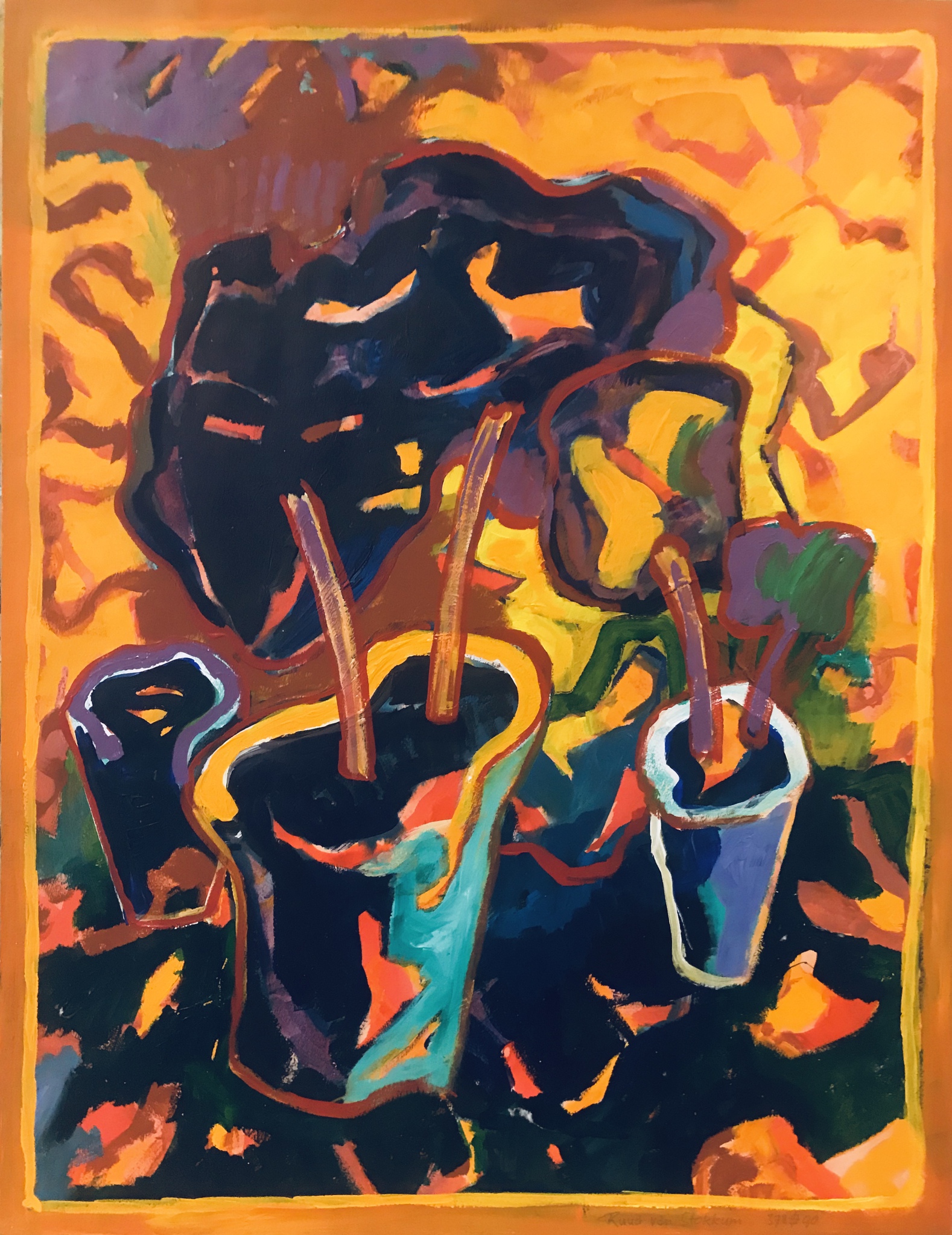 Acryl Bloem Stilleven Plant Bloempot