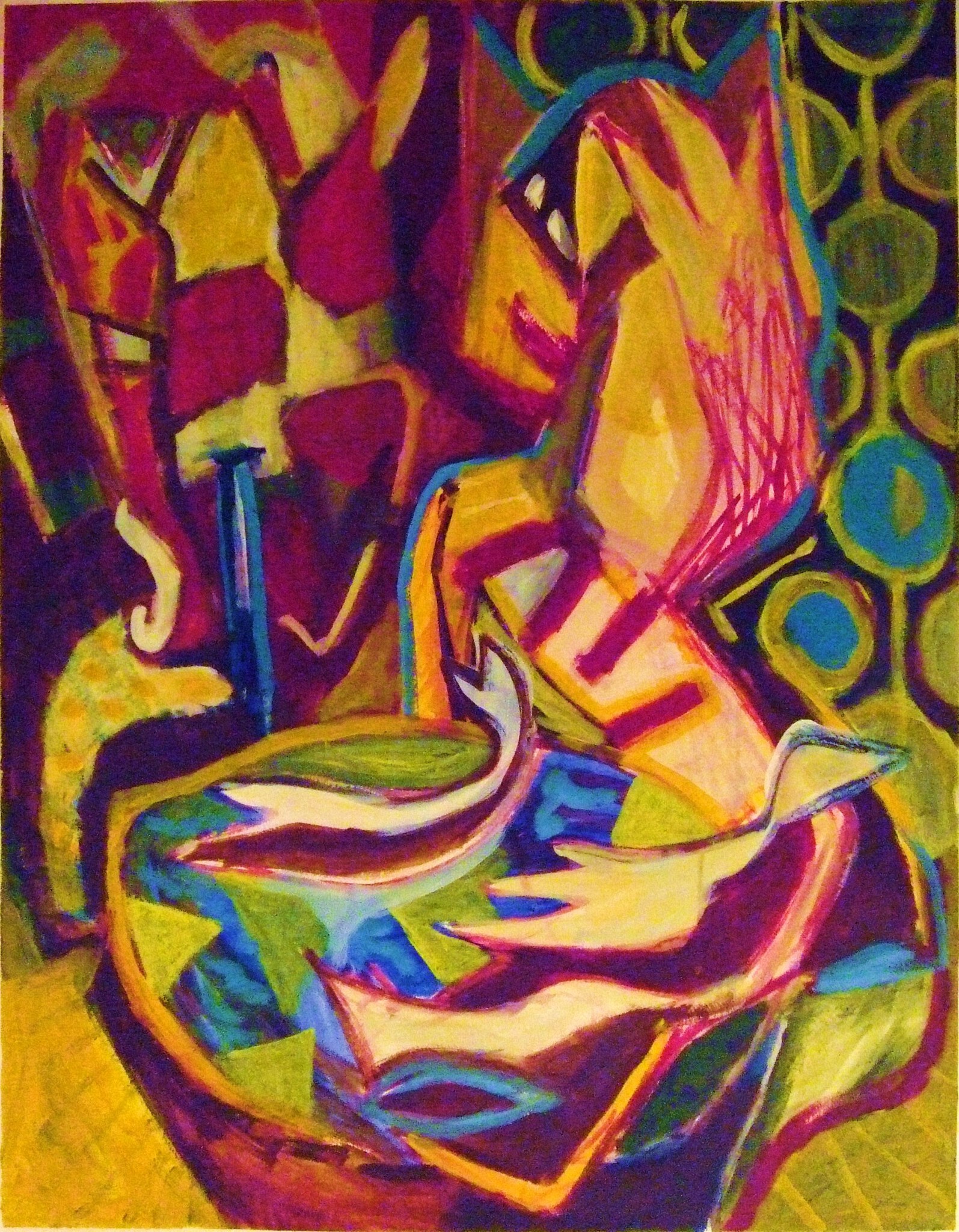 stilleven met kat acryl op papier, 50x65