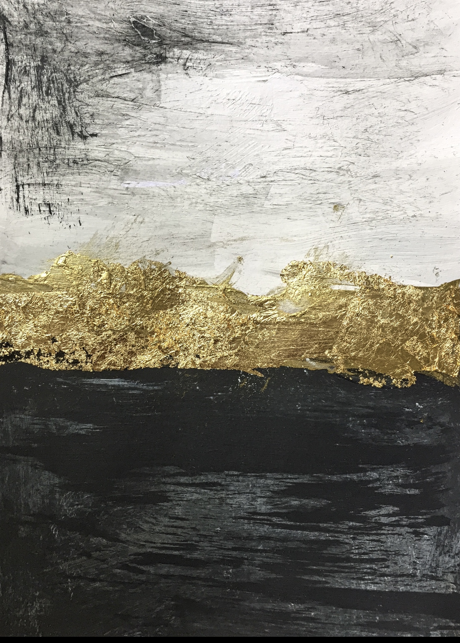 Abstract Papier Zwart Mixed Media Goud Wit Concept Verf Bladgoud Goudverf
