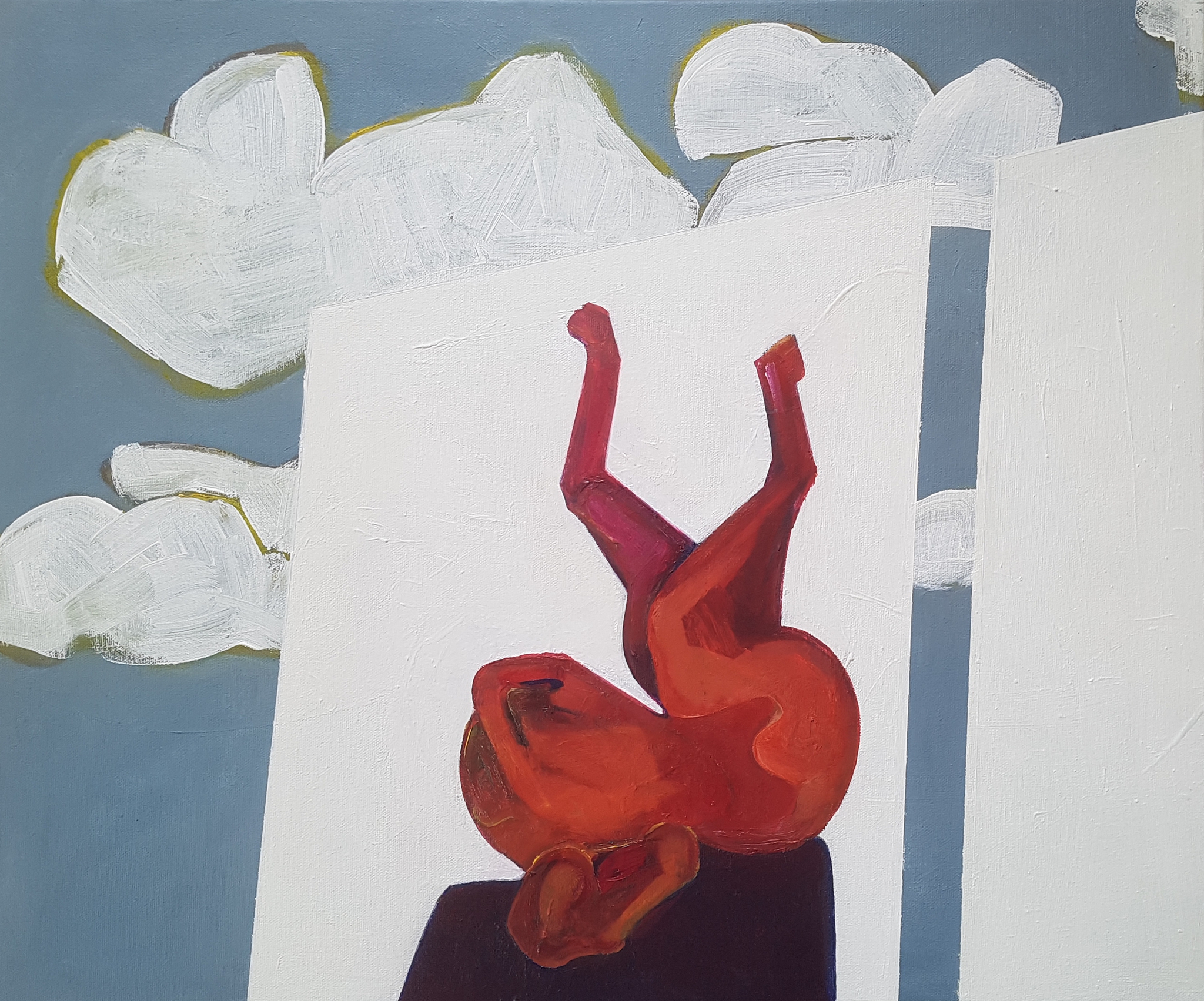 Schilderij Wit Abstract Figuratief Rood Blauw Wolken Beeld Olieverf Doek Kunst Acrylverf Lucht Paard Vlakken Schilderen Val