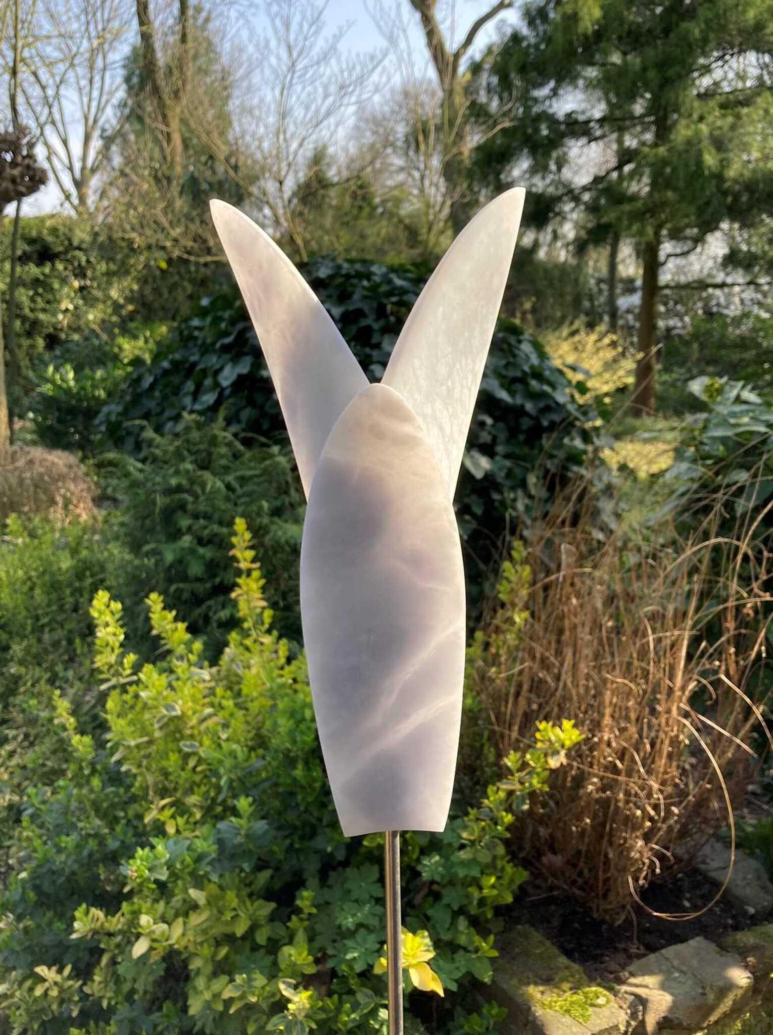 Flying is gemaakt van blauwe albast, is geplaatst op een roestvrij stalen pin van 1 meter op een stenen sokkel. De pin kan korter gemaakt worden.