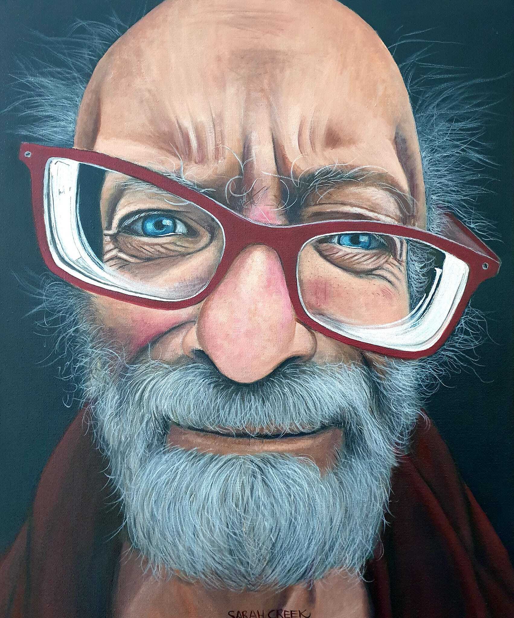 Oudeman Fantasie Rode Bril Portret Art Acryl Oldman Portretpainting Dutchartist