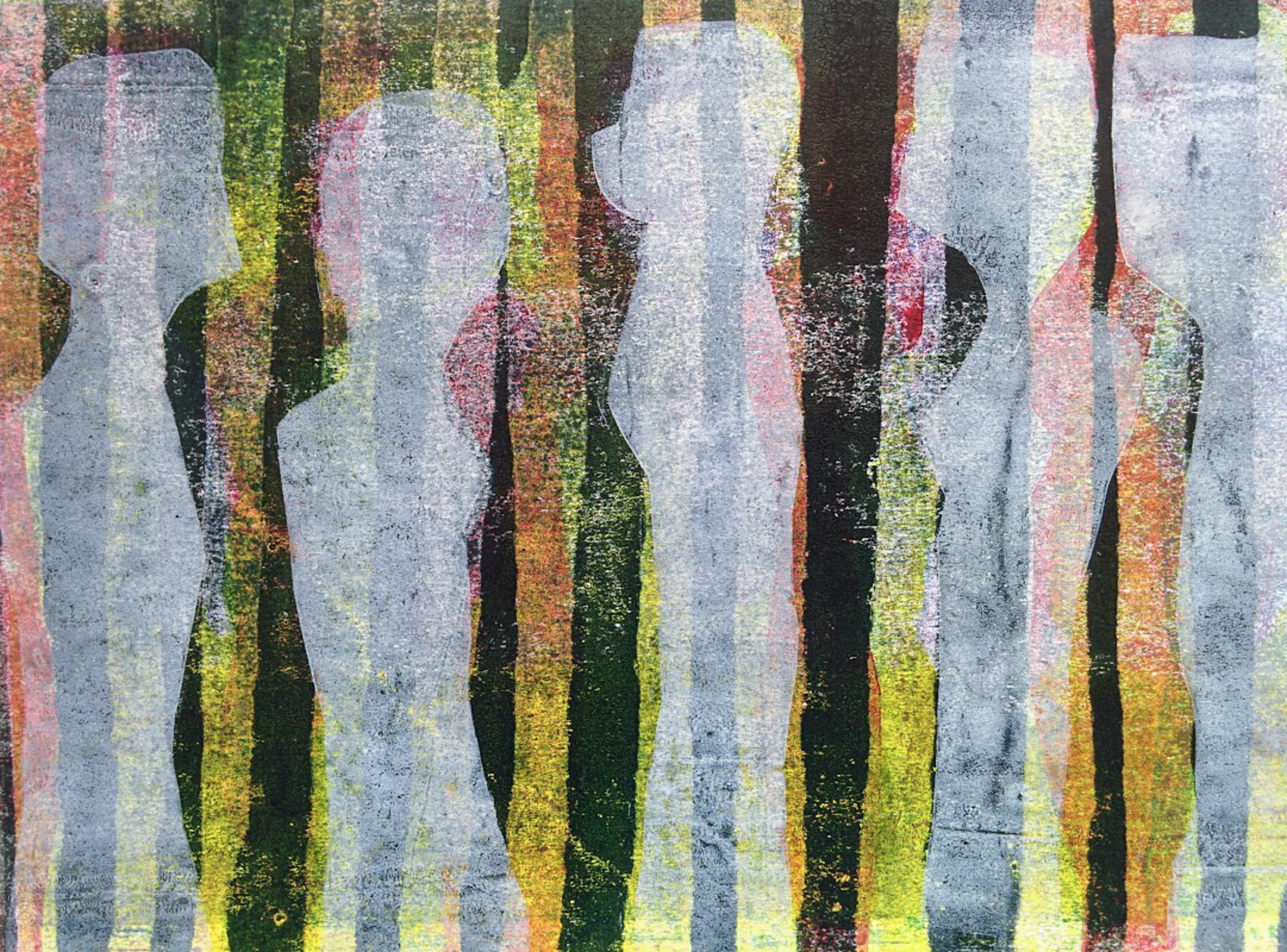 Een monoprint is een uniek drukwerk. De print is met passepartout ingelijst