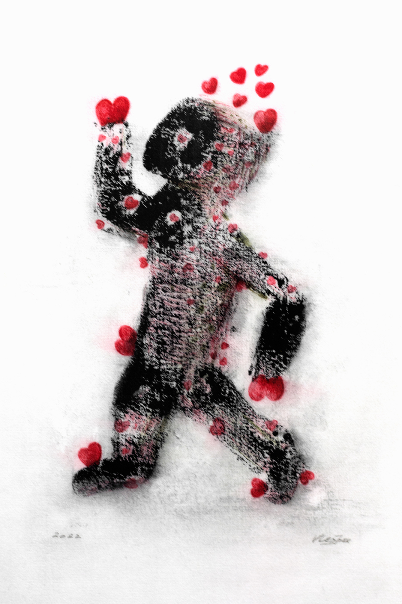 Mens Vrede Hartjes Liefde Peace Grafiek Monotype Mixedmedia Rood