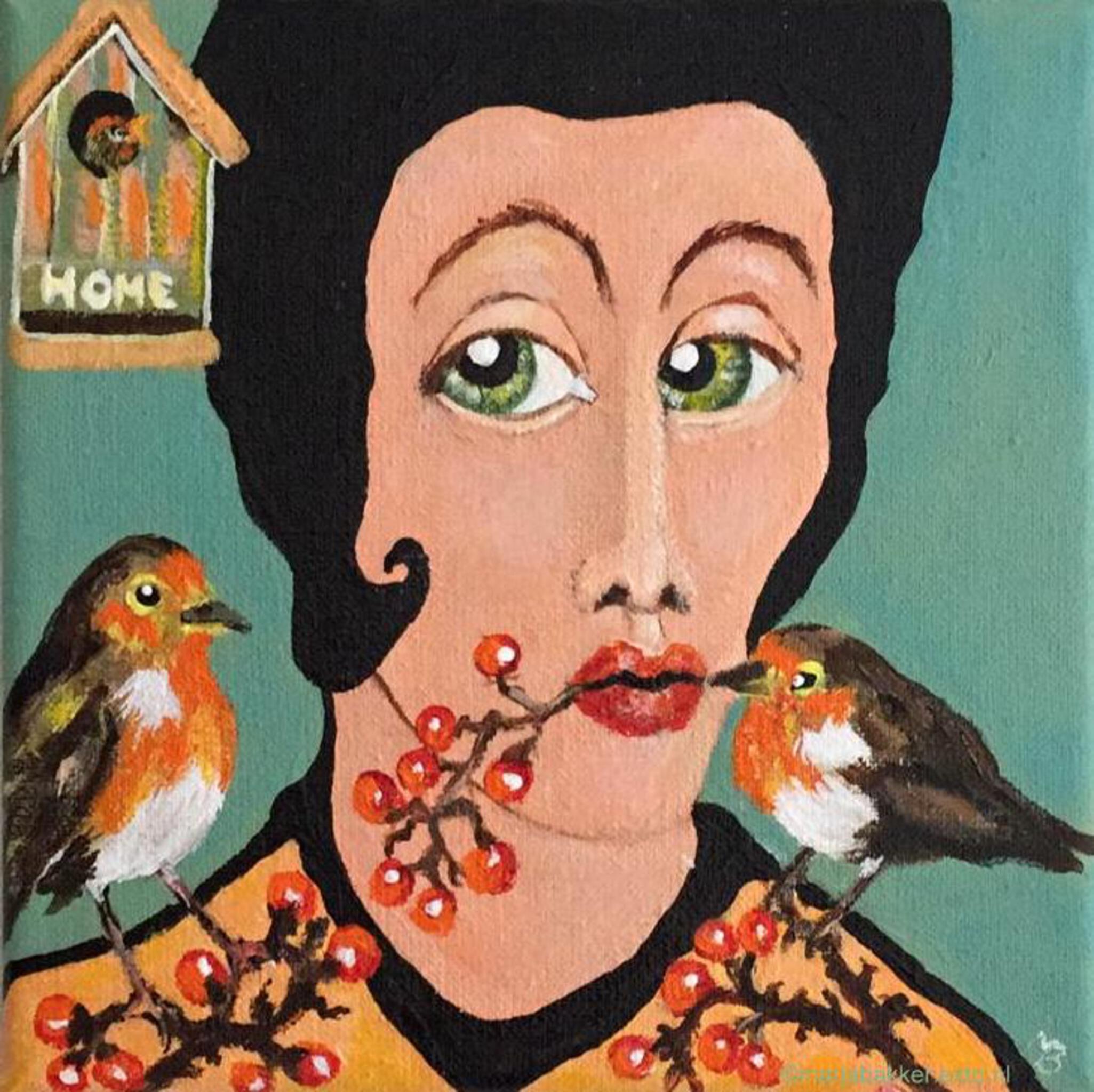 2 roodborstjes 20x20 cm acryl