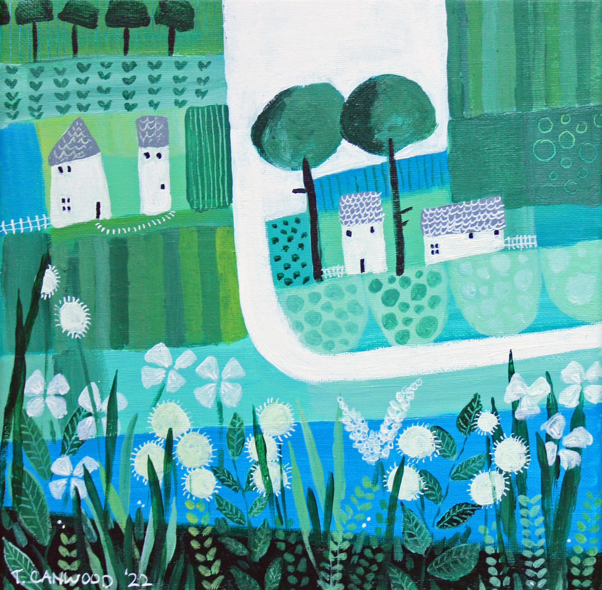 Trudie Canwood is professioneel kunstenaar en maakt kleurrijke schilderijen en zeefdrukken met af en toe een uitstapje naar tekeningen en linosneden. Zij exposeert regelmatig in binnen- en buitenland