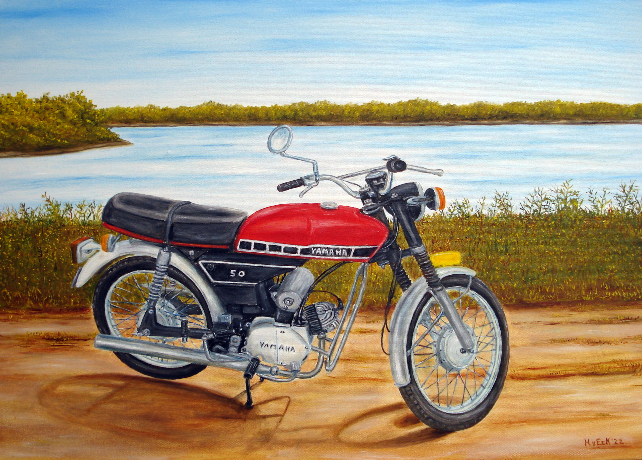 Yamaha Fs1 Olieverfschilderij Klassieke Bromfiets