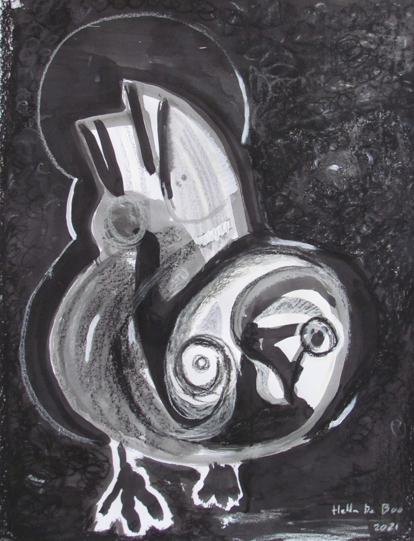 Cobra-art Jackdaw Crow Ink Charcoal Kraai Kauw Vogel Inkt Houtskool Bird Dier Animal