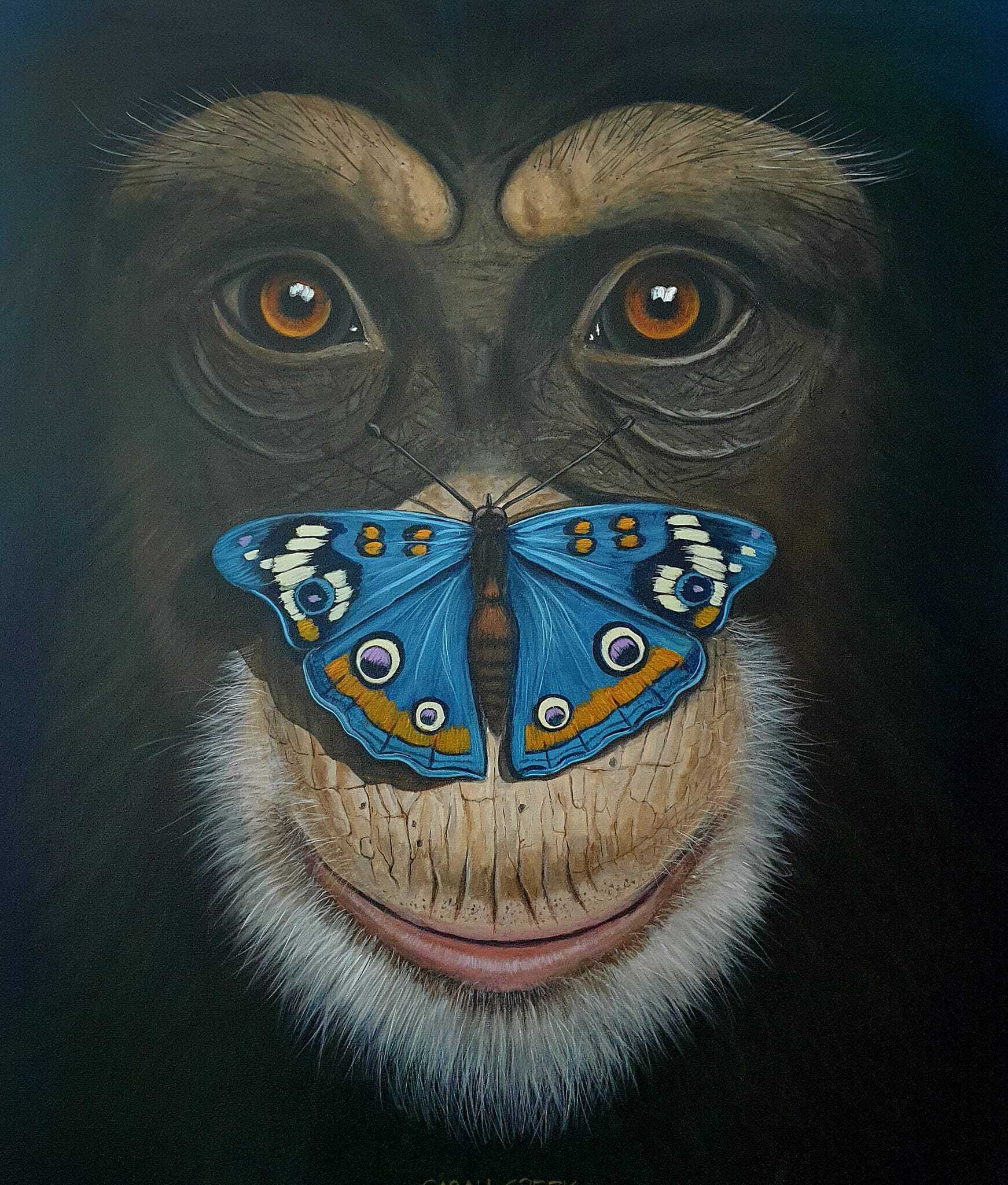 Blauw Acryl Art Vlinder Kleurrijk Aap Chimpansee Dutchartist