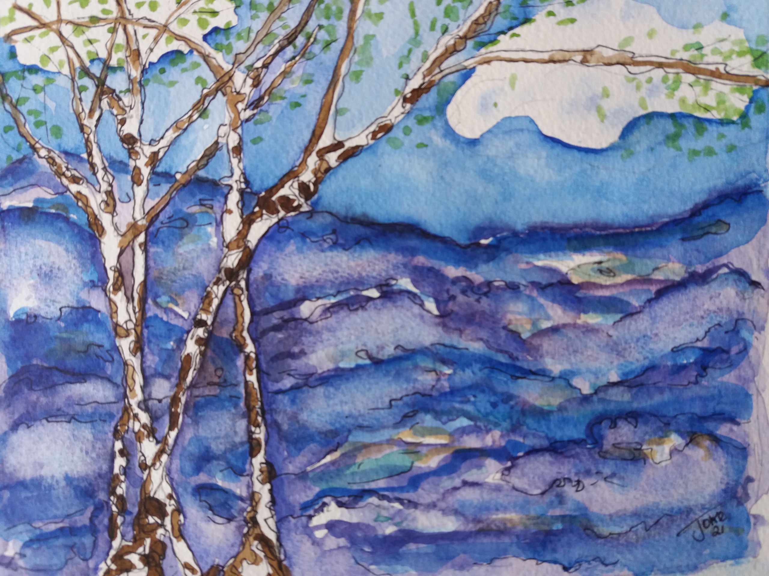 Landschap Paars Aquarel Boom Berk Hei