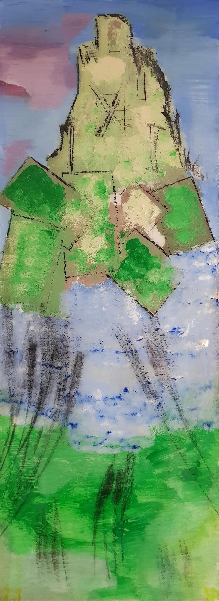 Devils Castle Deze ruïne in Oost-Turkije is vanwege de rotsblokken ontoegankelijk gemaakt. Dit schilderij is voorzien van een "epoxylaag", tevens beschermlaag voor de acryl die is aangebracht.