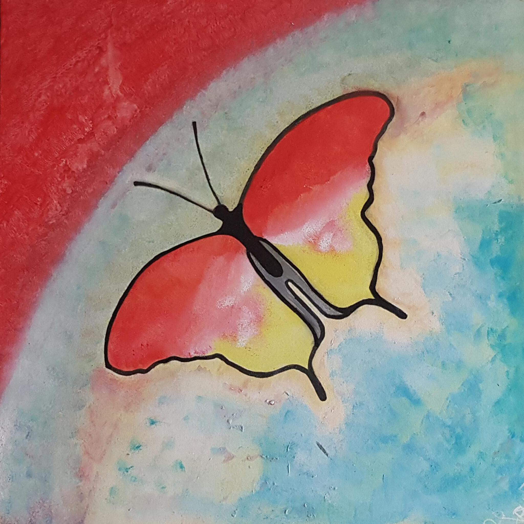 De Vlinder is voorzien van een "epoxylaag", is tevens beschermlaag voor de op doek aangebrachte acryl.