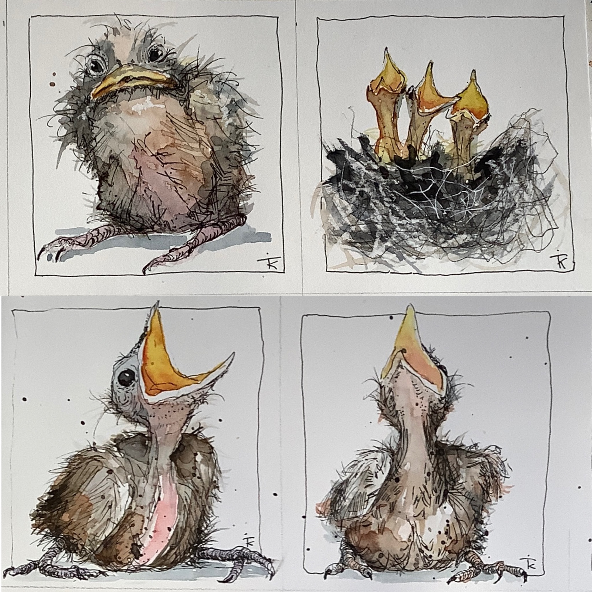 Aquarel Inkt Vogeltjes