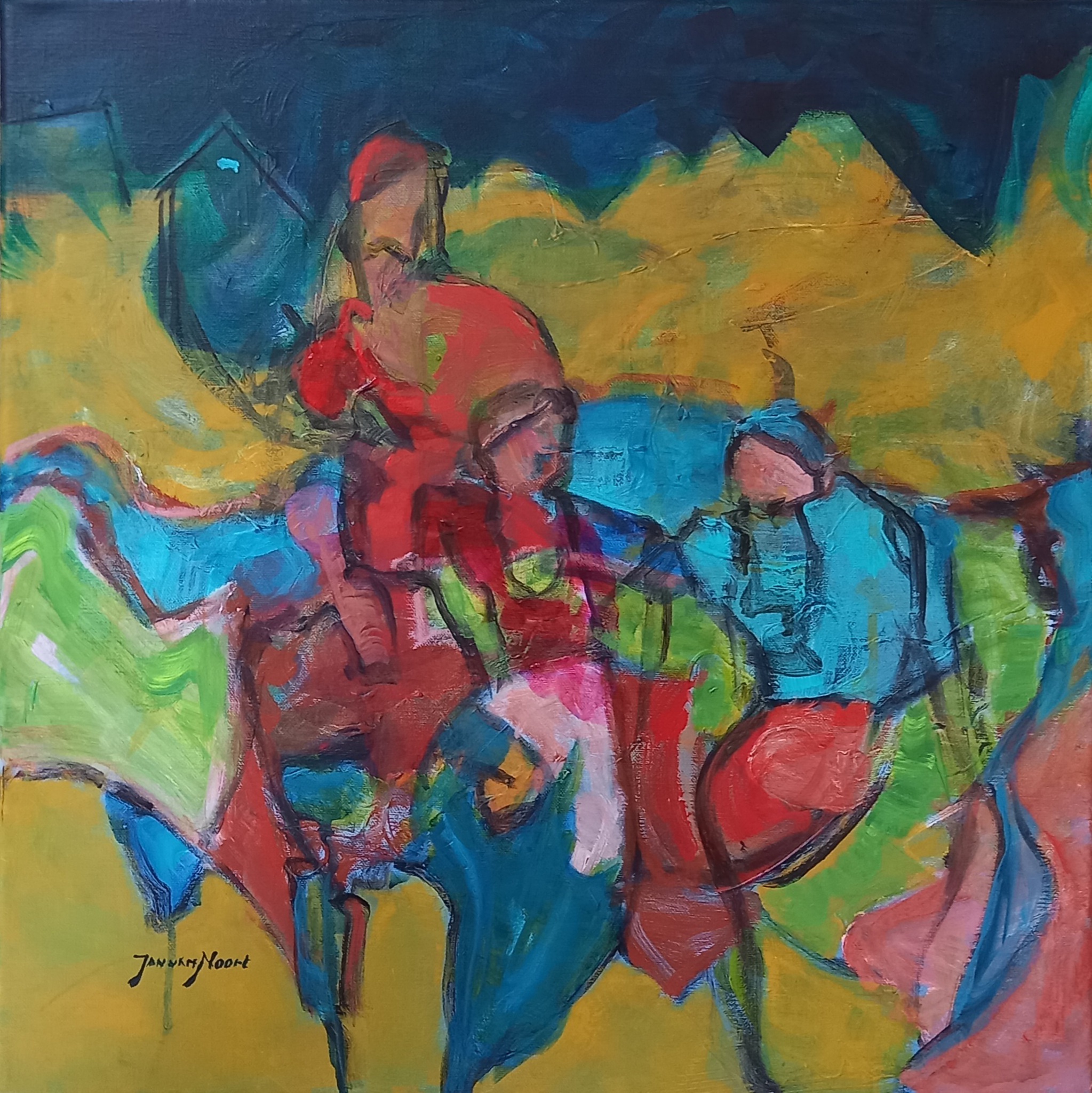 De inspiratiebron voor mijn werk zijn herinneringen en de dagelijkse dingen om mij heen. Een uitbundig kleurenpalet en werken op grotere formaten hebben mijn voorkeur. Tijdens het schilderen ontwikkelt zich, door een spel met kleurvlakken en lijnen, een beeldverhaal met geabstraheerde vormen. Het geschilderde resultaat is een vertaling van wat ik zag en voelde. Het schilderen is een avontuur.
