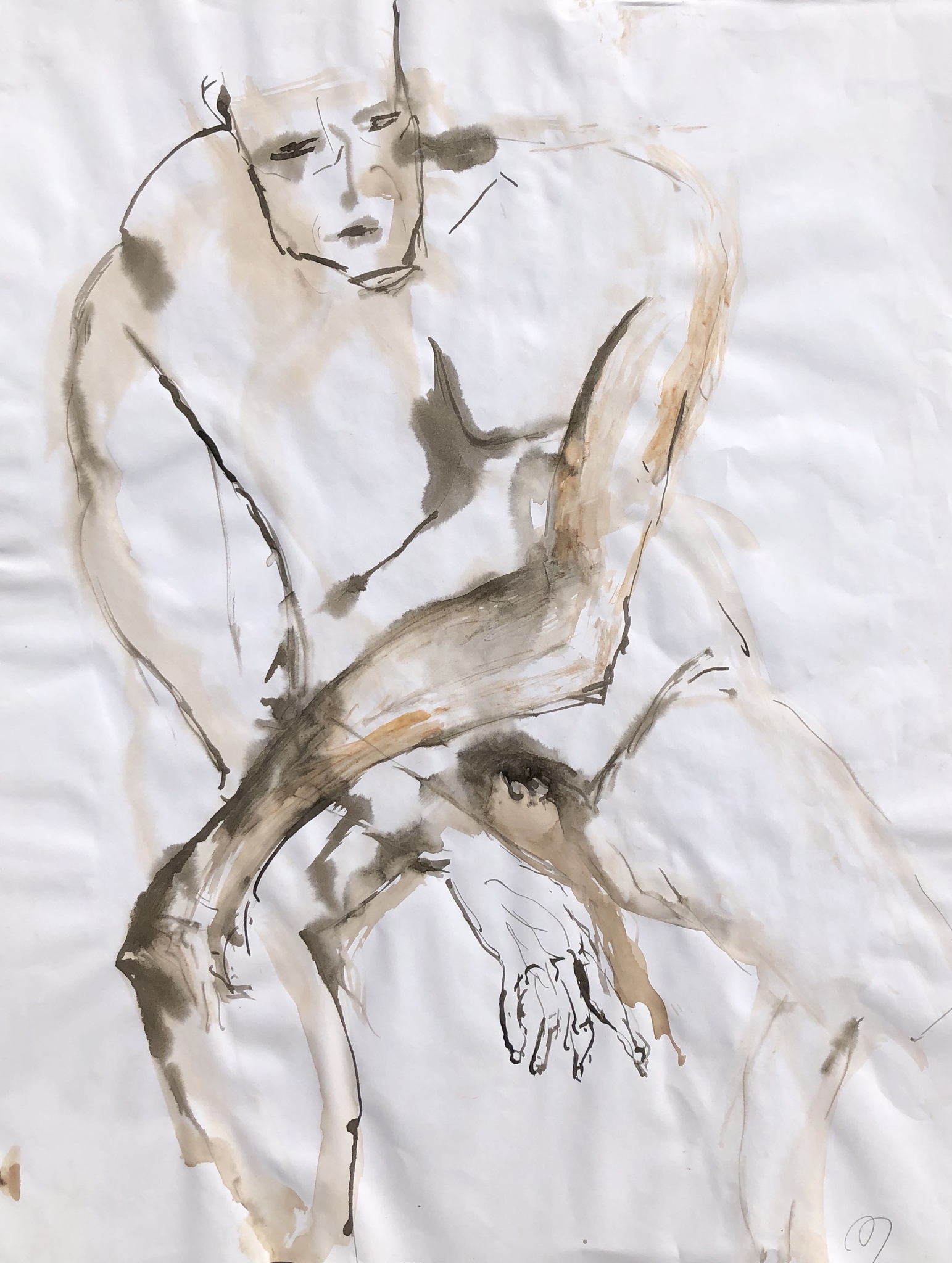 Man Naakt Bruin Zittend