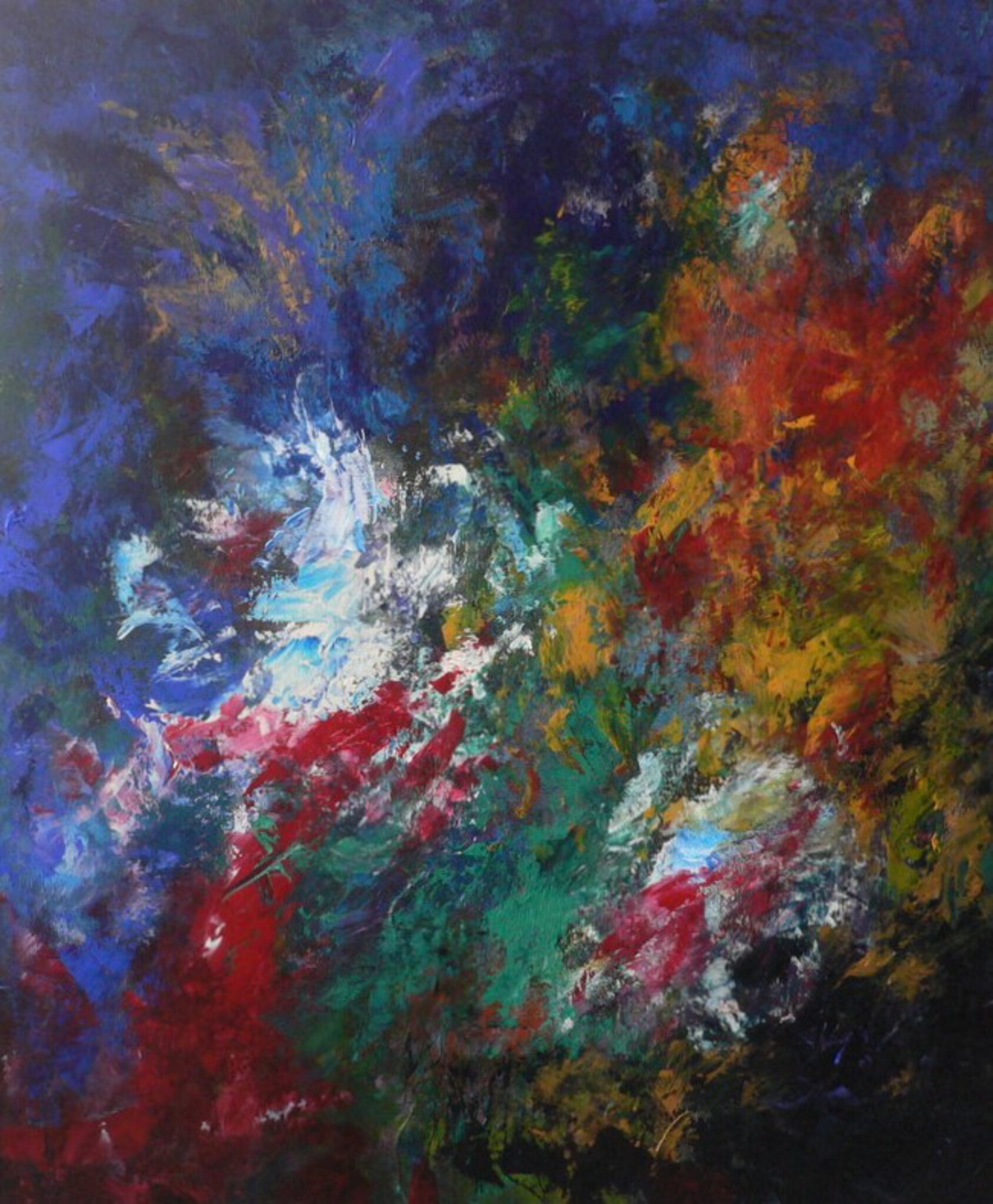 schilder zowel abstract, abstraherend als figuratief in acryl op doek