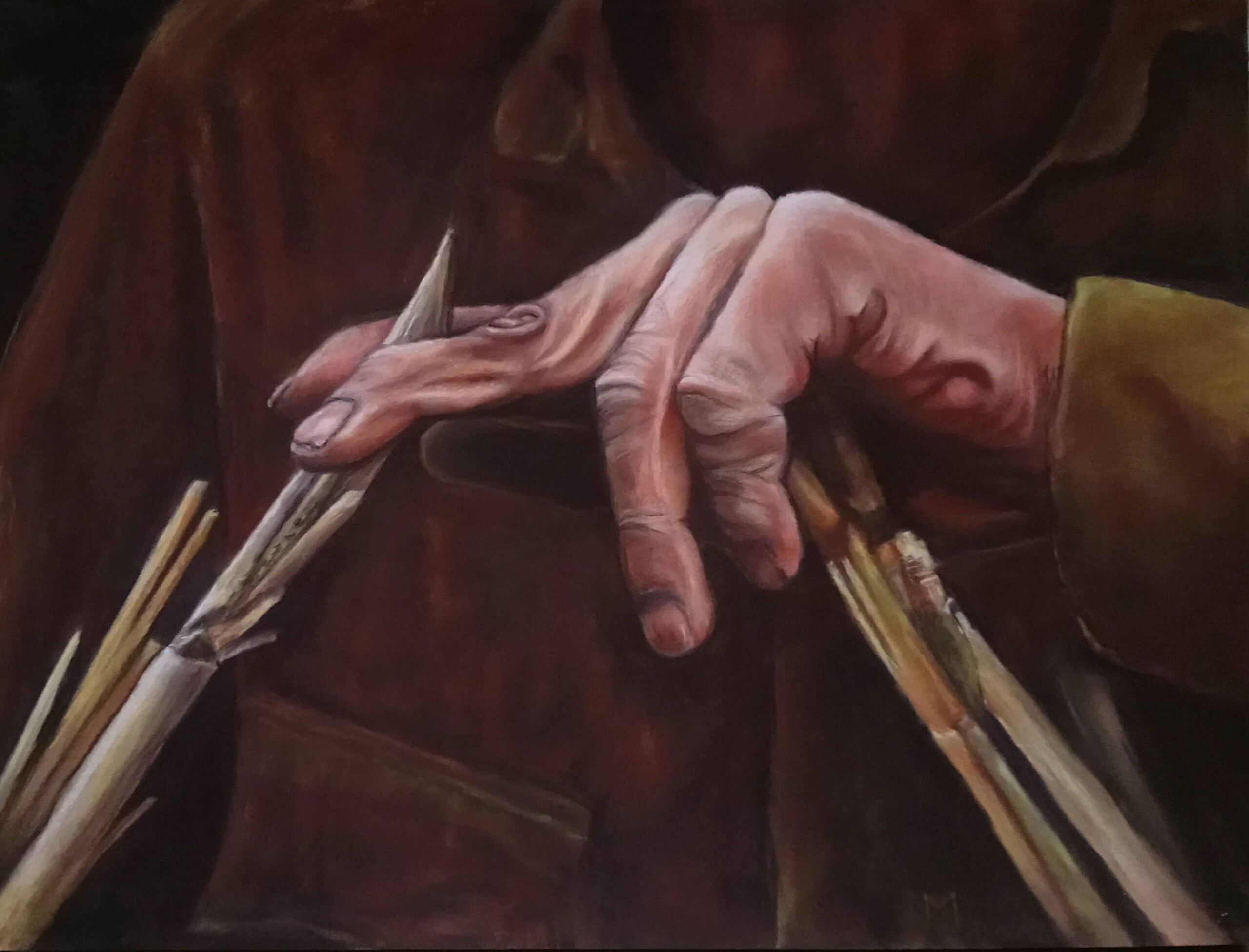 Softpastel op pastelmat 30x40 Geïnspireerd op een foto van Basil Pao Handen van Naga krijger.
