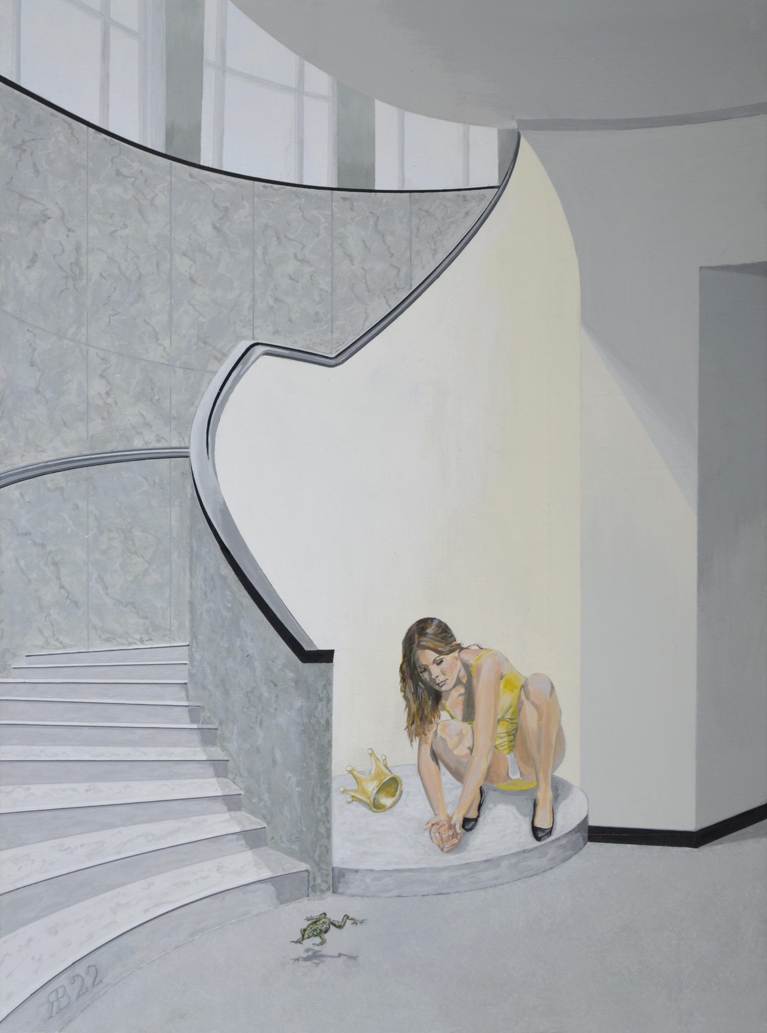 Portaal Trap Lichtinval Kikker Gehurkt Pumps Benen Trapleuning Upskirt Model Vrouw