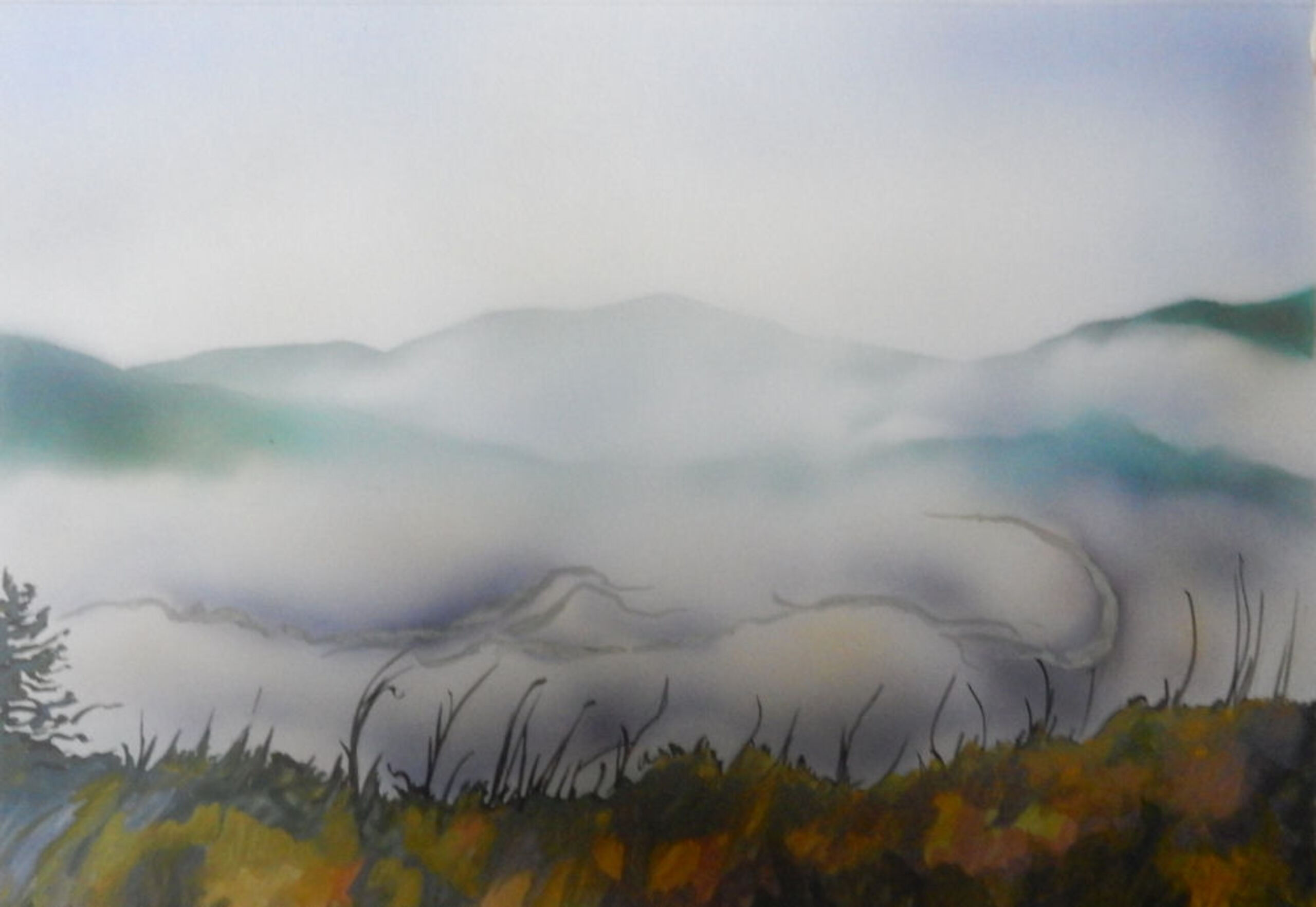 mistige bergen met airbrush gemaakt