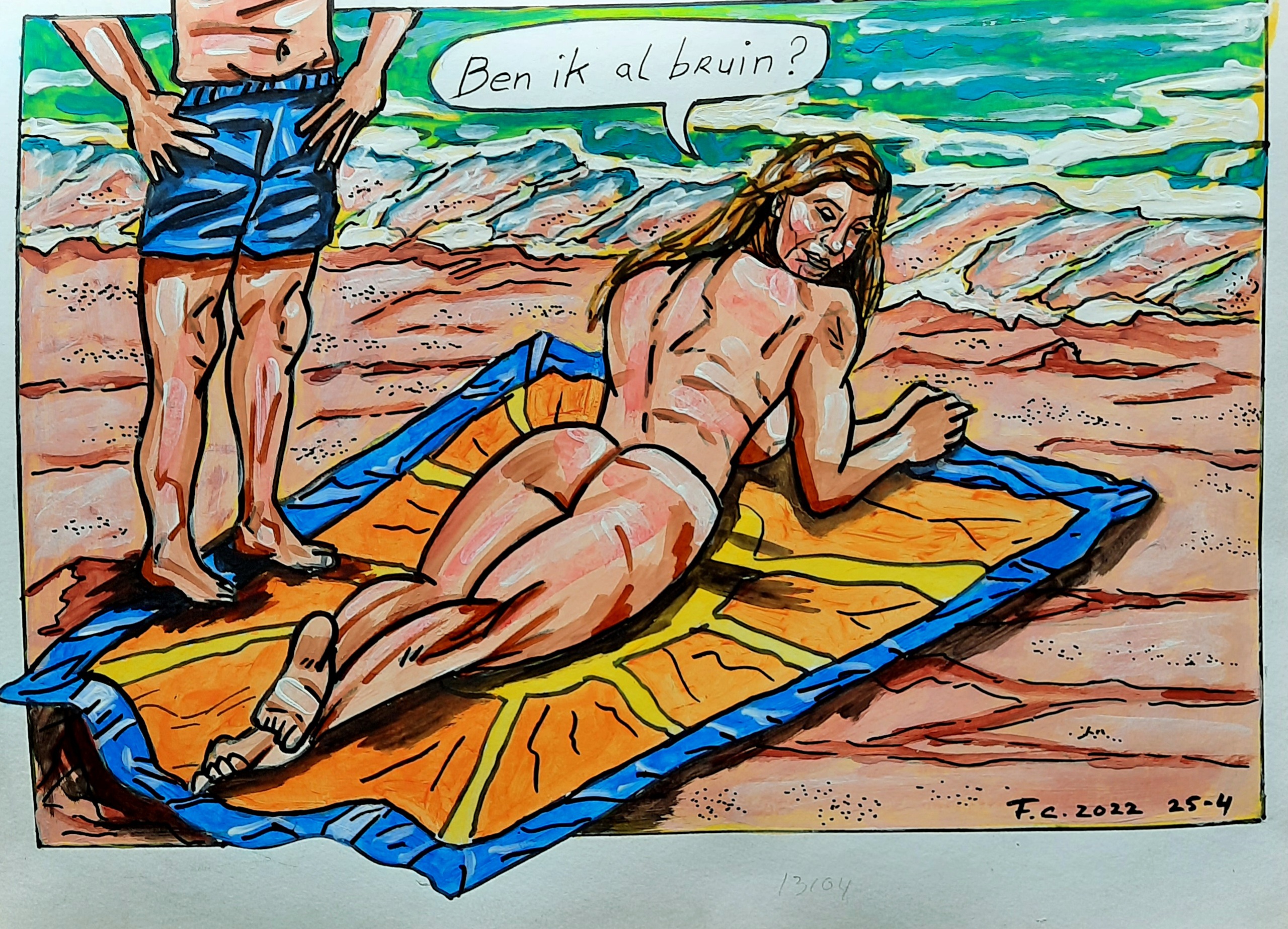 Zee Zon Strand Vrouw Bruin Mixed Media Zand Sea Popart