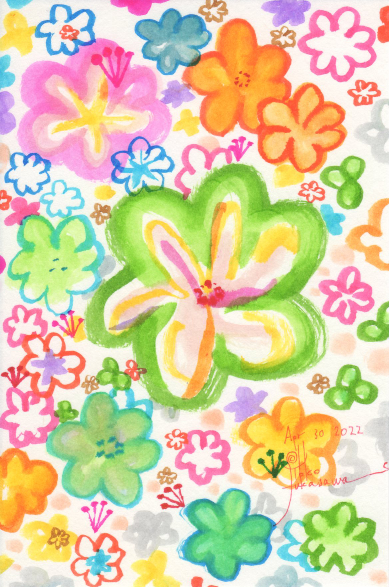 Yoko Fukasawa was born in 1982. 2001-Japan traditional craft department,Metal crafts major 2001-Volkswagen new Beetle - art contest The third place. 2002-TOKYO DOME - Tableware festival Fine work. 2017-And Schizophrenia has been revealed. Her paintings are outsider art. They are characterized by simple shapes and bright colors. She wants you to look at them and relax.