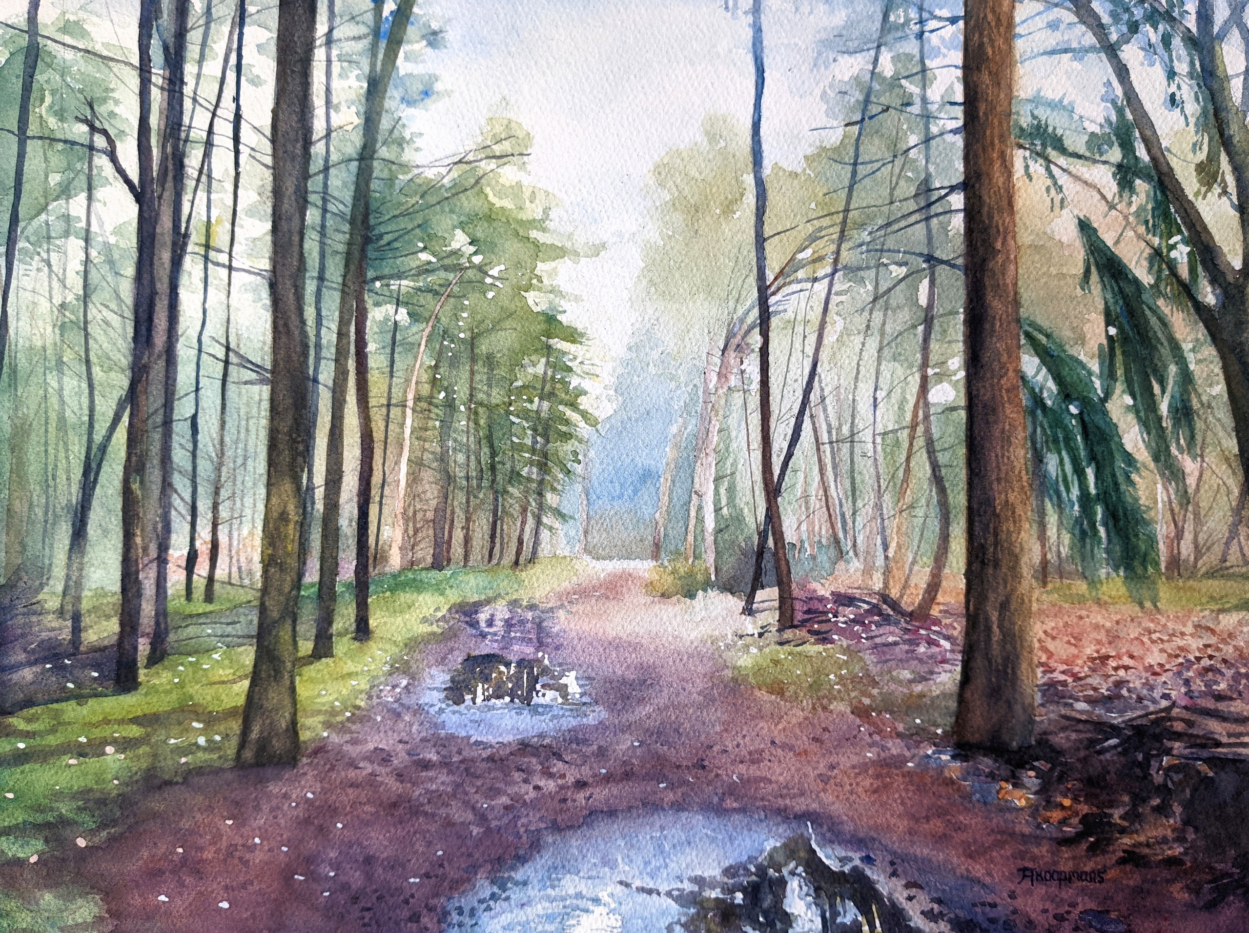 Mijn werk is vooral een ode aan het Nederlandse landschap, de steden, het water, een enkel buitenlands avontuur. Met de transparantie van aquarel schilder ik licht en kleuren op de mooiste momenten.