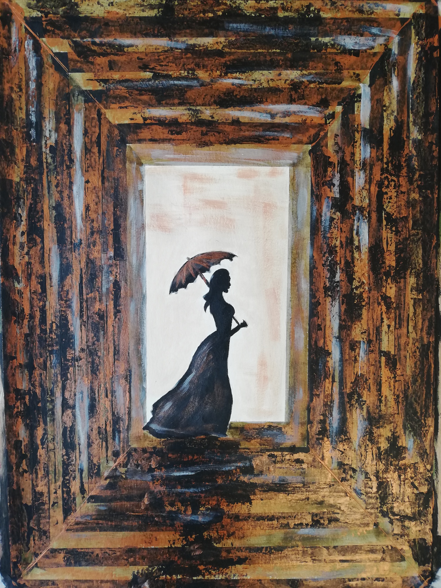 Surreel Abstract Modern Vrouw Paraplu Achtergrond Background Koperkleur