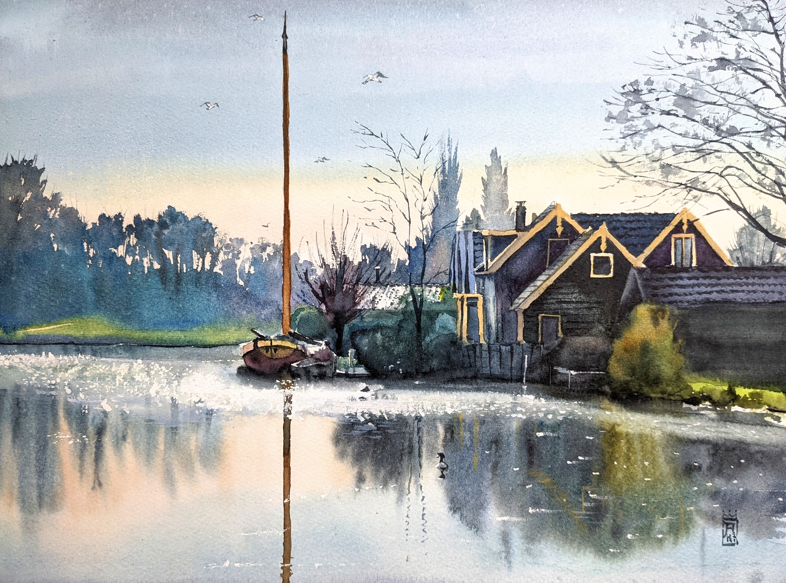 Mijn werk is vooral een ode aan het Nederlandse landschap, de steden, het water, een enkel buitenlands avontuur. Met de transparantie van aquarel schilder ik licht en kleuren op de mooiste momenten.