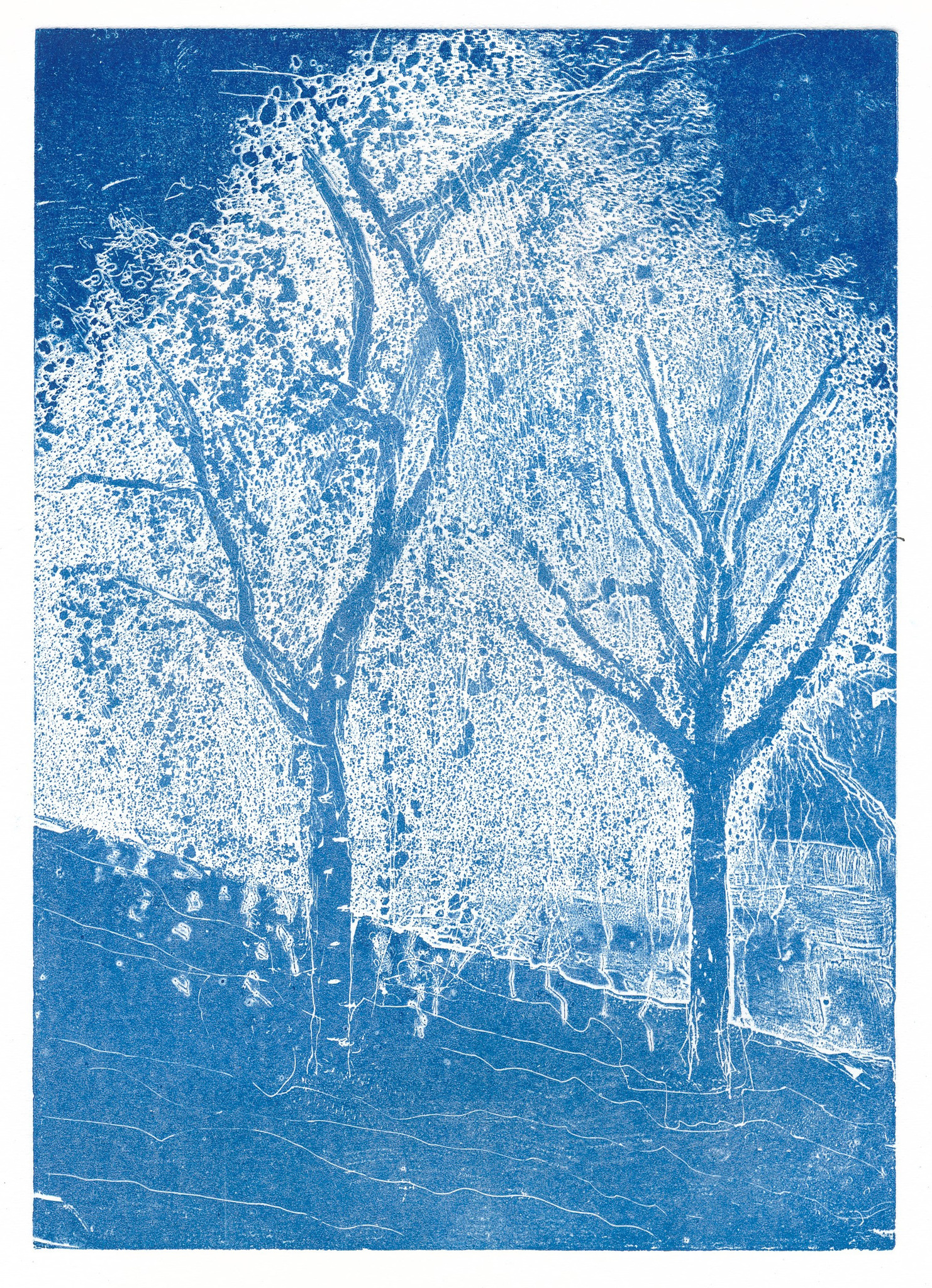 Blauw Natuur Bomen Winter Bos Grafiek Ets Berken