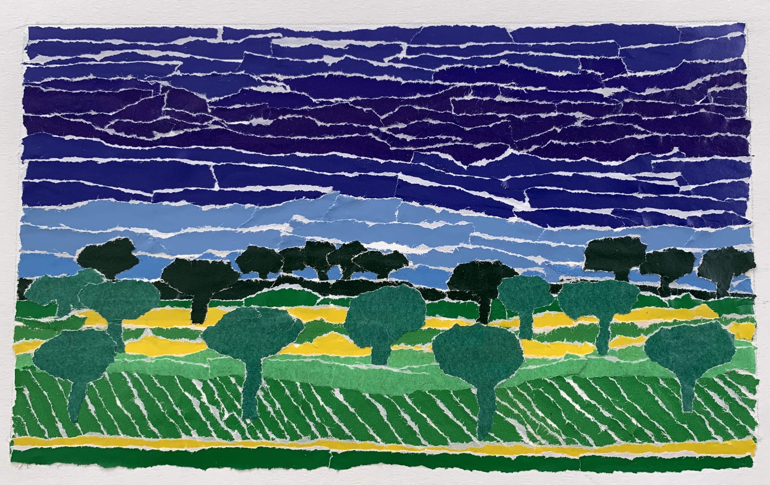 kleurige collage van sitspapier geïnspireerd op een landschap in Frankrijk