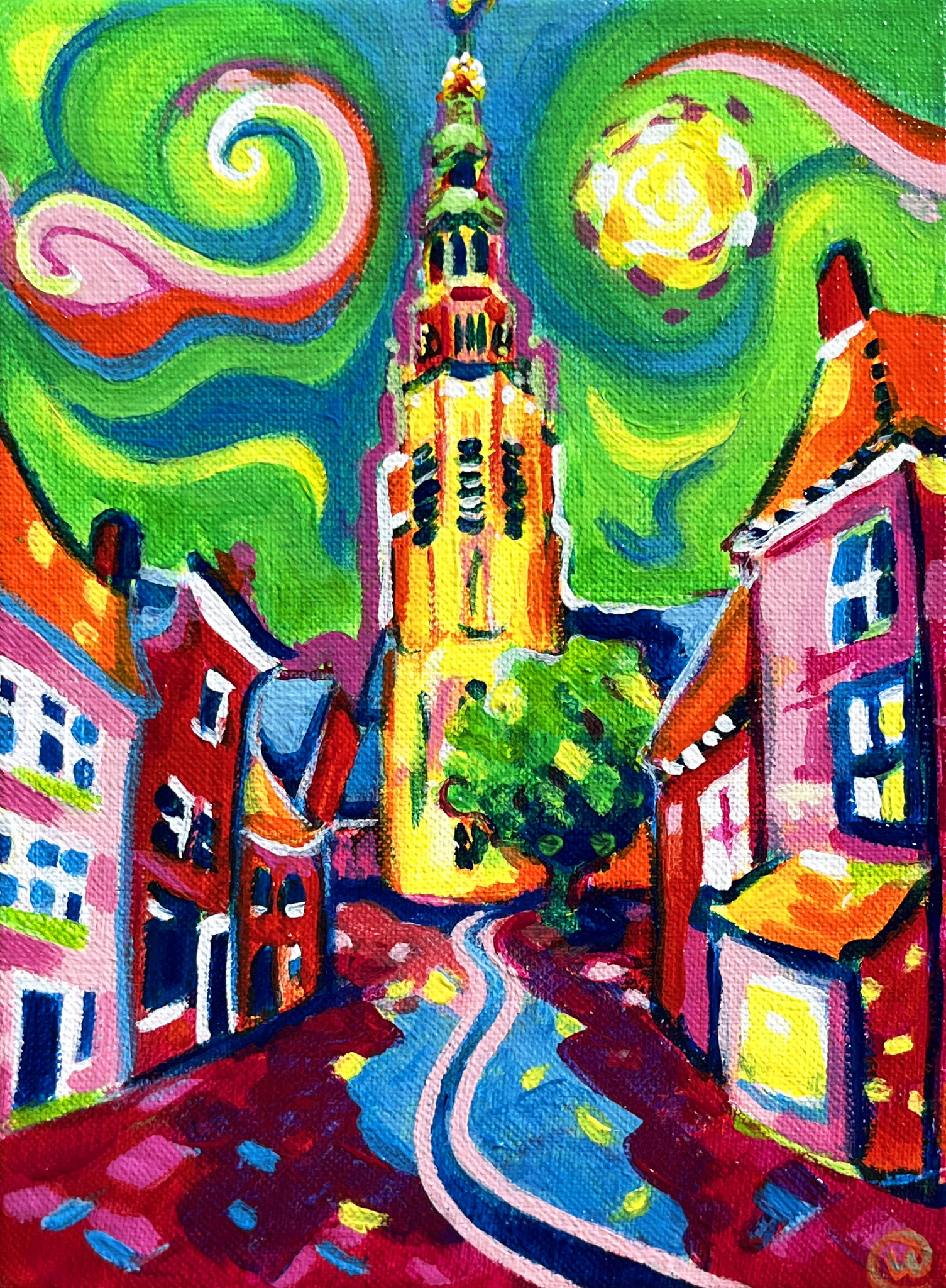 Wiet (Wieteke Hendrikx) laat zich leiden door kleur. De kleuren die zij ziet én de kleuren die zij wil zien. Zij schildert herkenbare stadstaferelen en natuurgezichten.