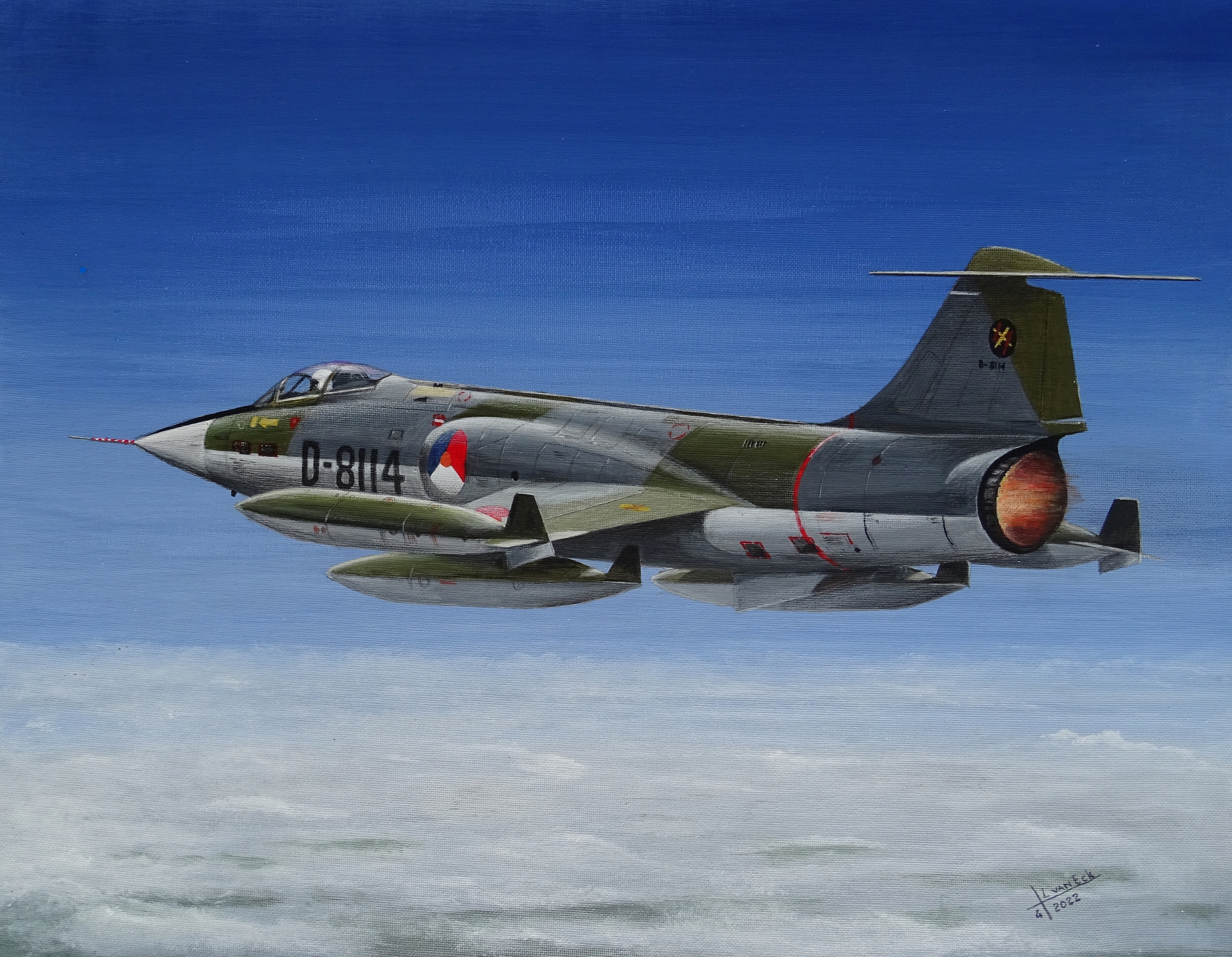 Deze F104 G Starfigter met registratie D-8114 wordt momenteel op vliegbasis Volkel gerestaureerd.