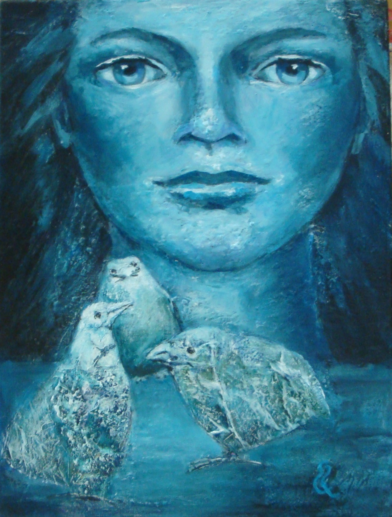 Meisje Vogels Lyrisch Expressief Blauw Verhalend