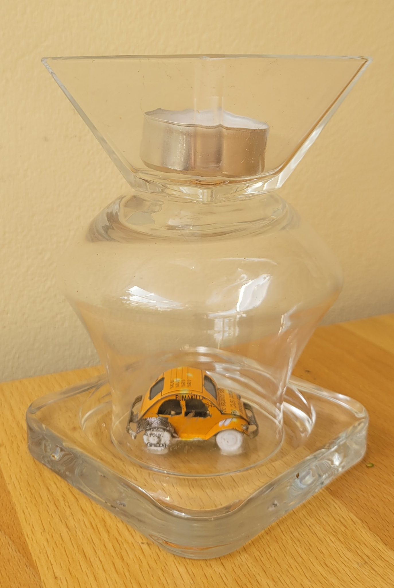 Een blikken autootje onder glas: een autoloze zondag!