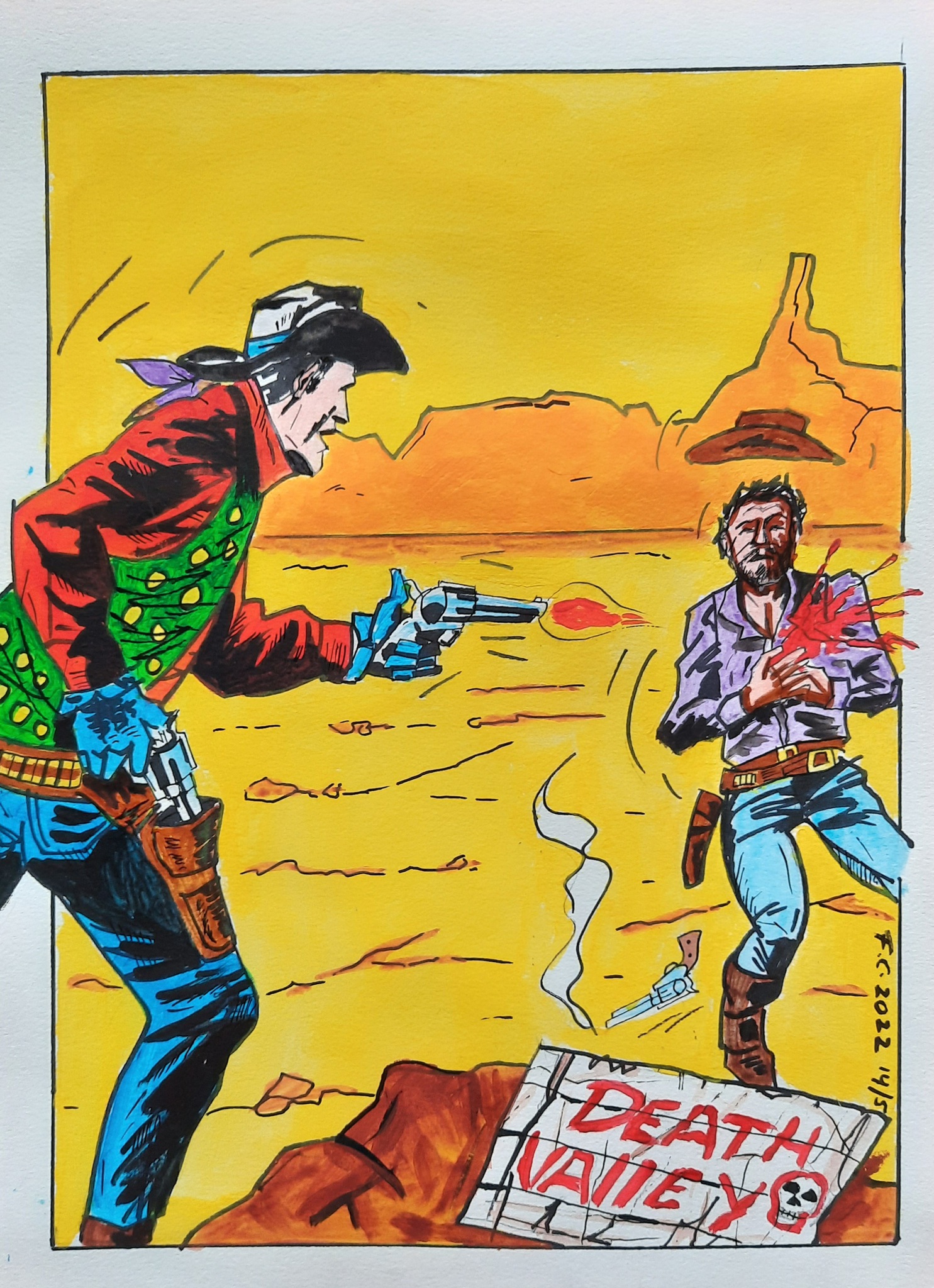 Mixed Media Cartoon Schieten Geweld Popart Cowboys Comics