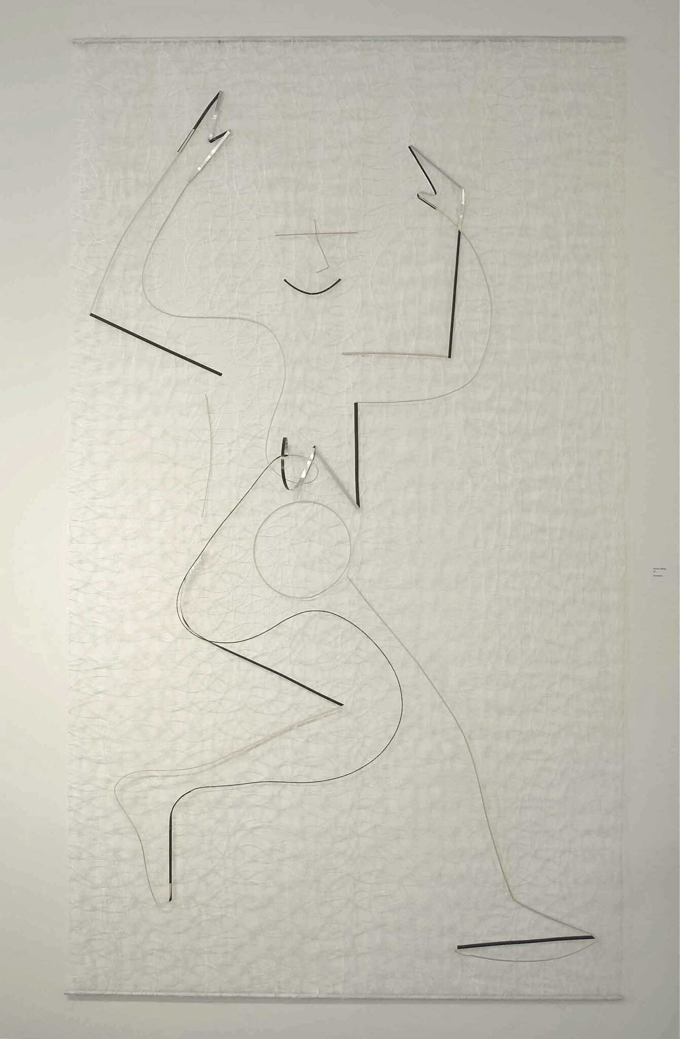 Dit werk is gemaakt als tegenhanger van "Vast in hersenspinsels". Dit werk heb ik gemaakt voor een tentoonstelling, die georganiseerd is door het KunstCentrumBergen en te zien was in Museum Kranenburgh in 2015. Het is een halfruimtelijke lijntekening gemaakt van pitriet en eenzijdig zwart geverfd aluminium op een ondergrond van transparante textiel. Een mens figuur, die vrij en dansend door het leven gaat zonder belemmeringen.