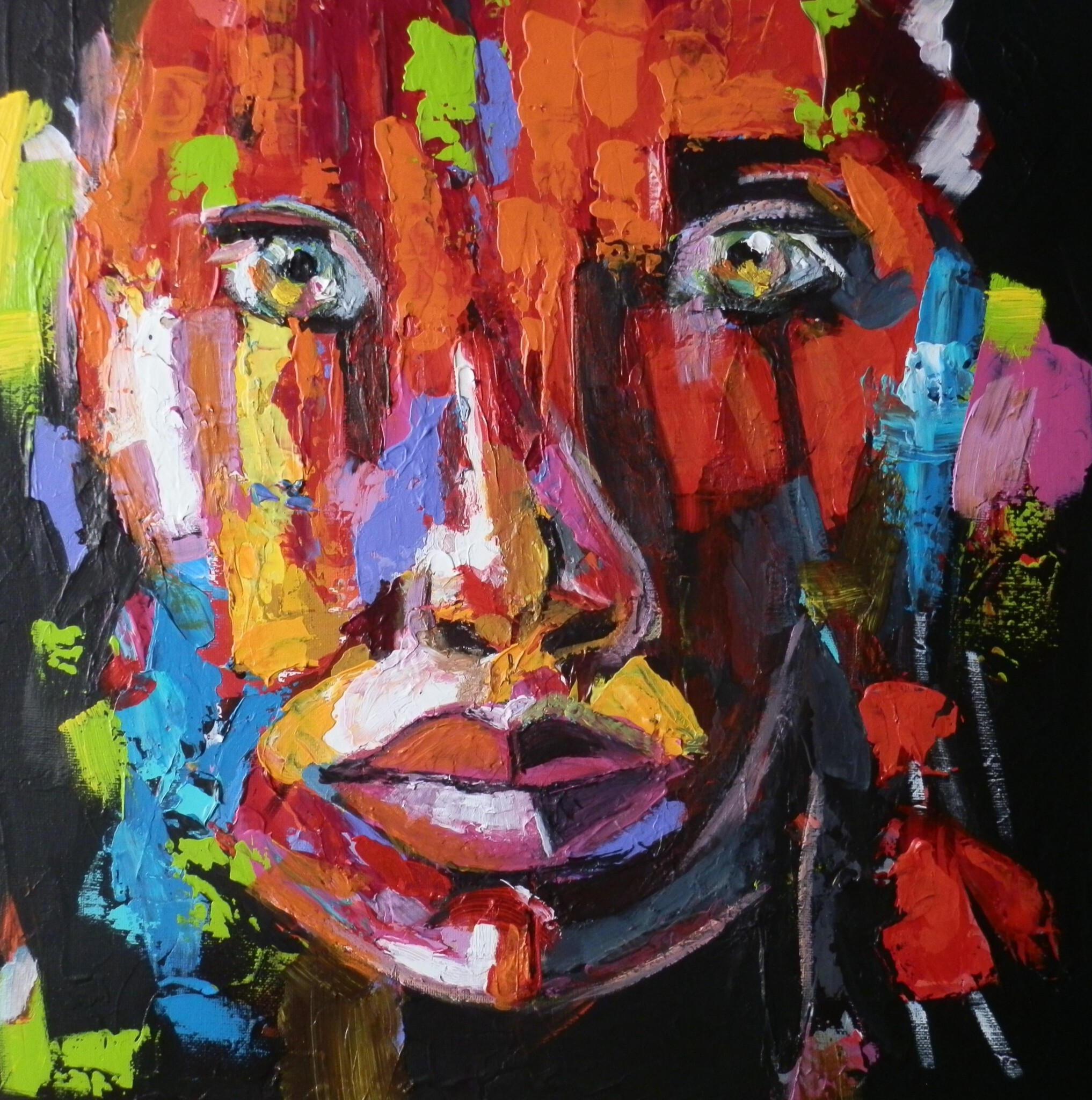 Naar Francoise Nielly, acrylverf met paletmes en kwast. Niet gekopieerd, eigen tonen.
