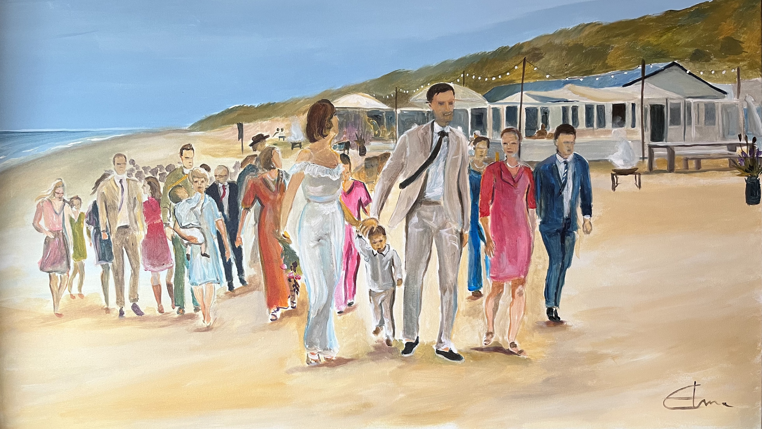 Bruiloft Huwelijk Trouwen Strand Live Paint Livepaint Acryl Schilderij Cadeau